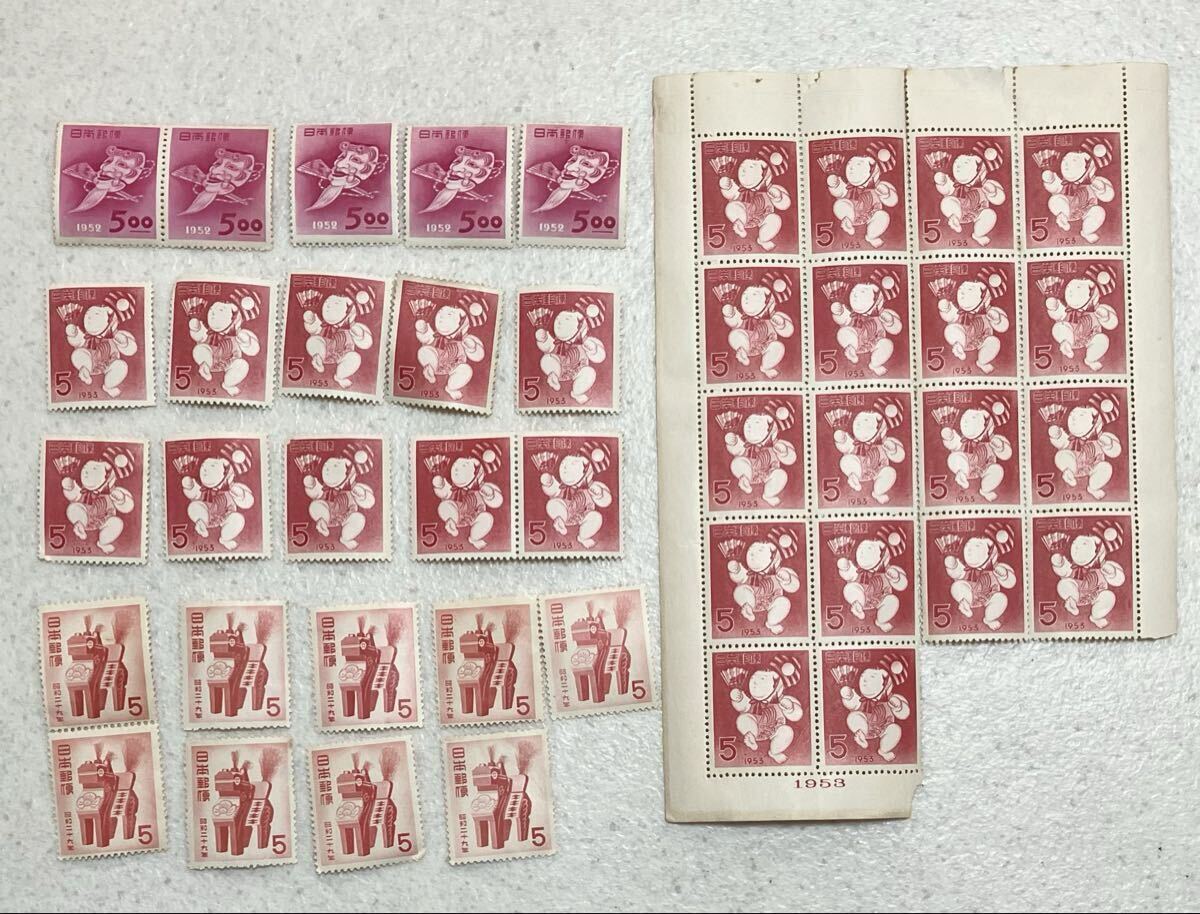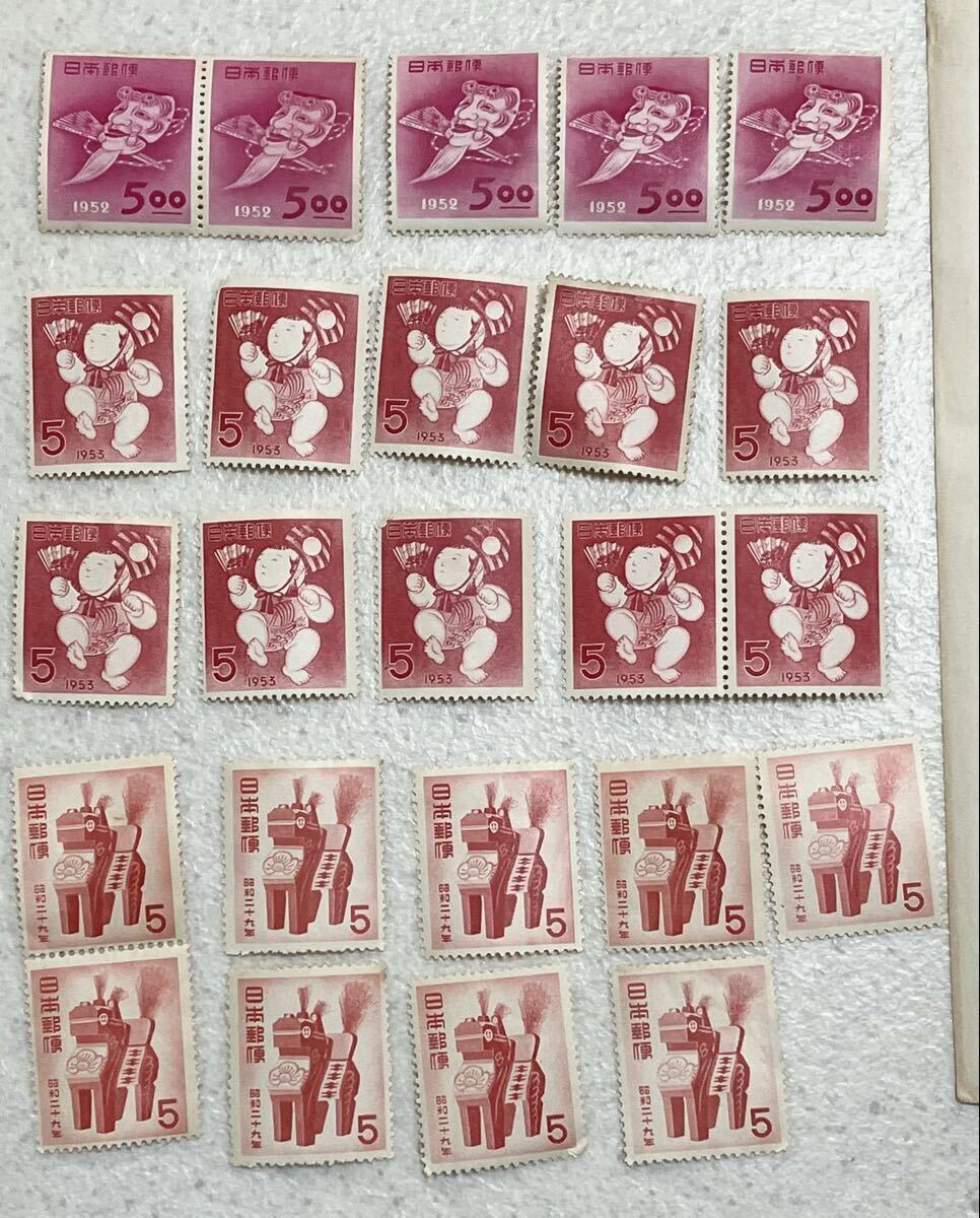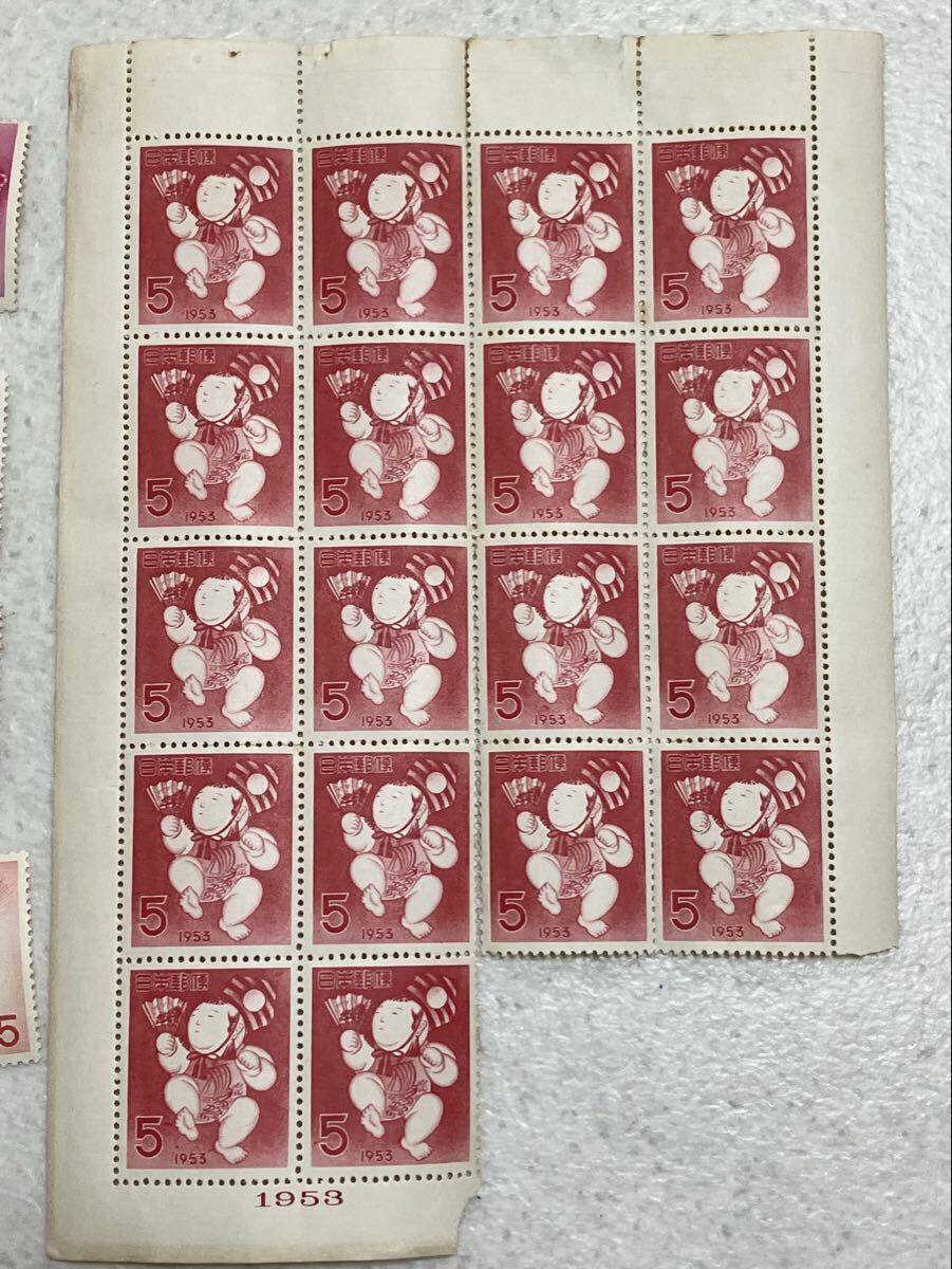 年賀切手 5円 バラ ブロック 1952〜1954年