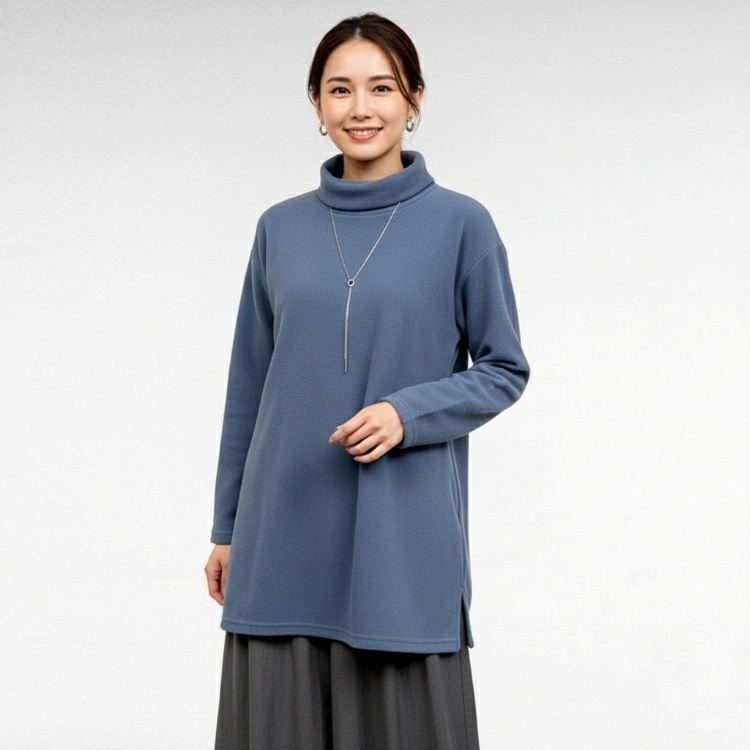 ふんわり暖かい着心地の両面起毛フリース素材を使用した長袖チュニックです