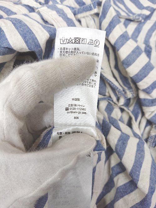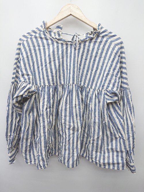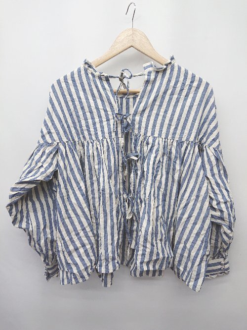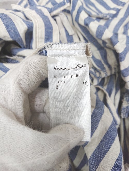 ◇ ⊂ SM2 サマンサ モスモス リボン ギャザー ストライプ 長袖 チュニック ブラウス サイズF ブルー レディース P