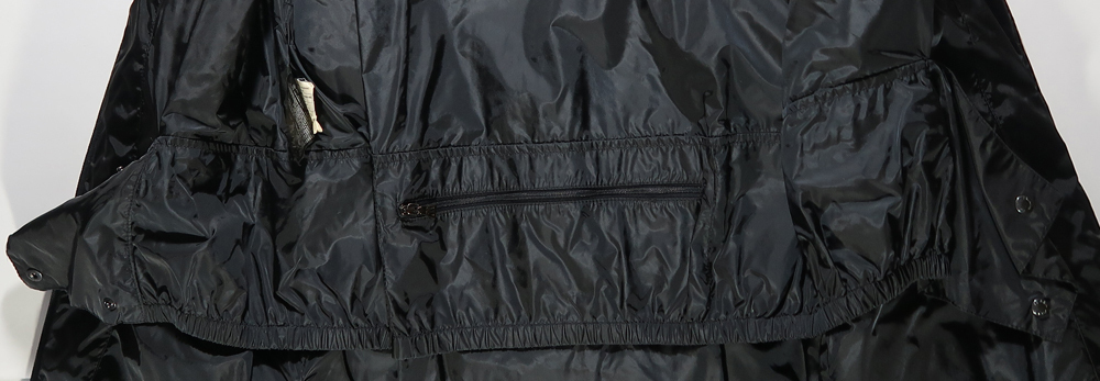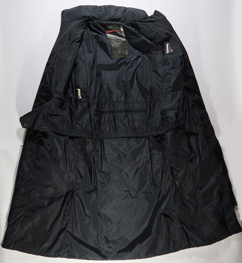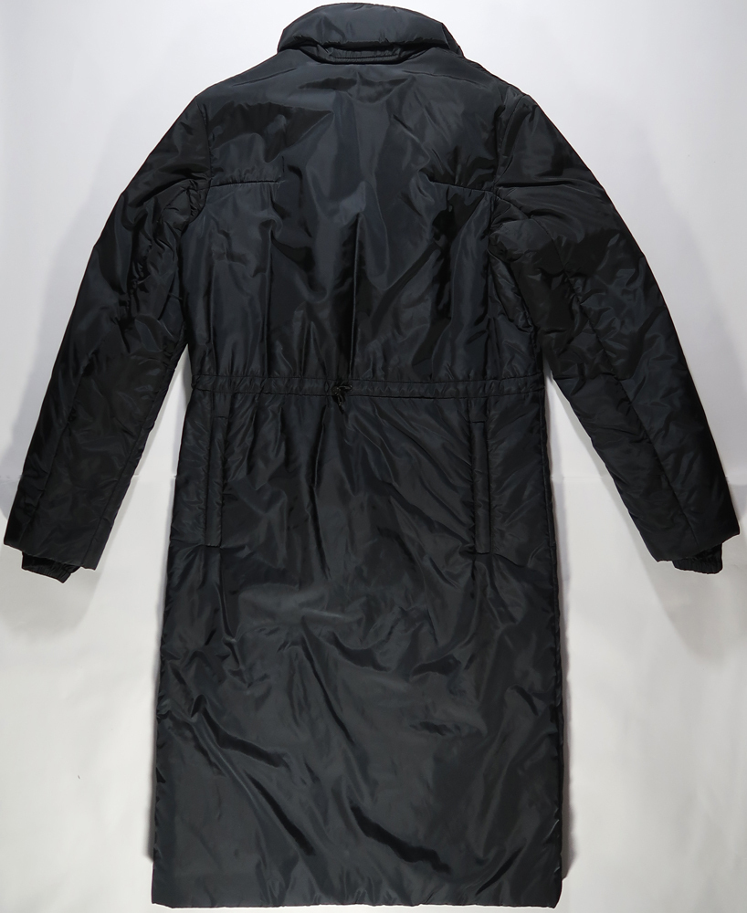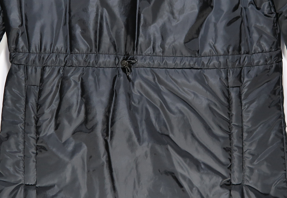 出品は画像の物のみです。首周りにフードがついています。襟裏に隠してしまいます。このコートはけっこうポケットが多いですし変わった所にポケットもあります。コート背面の腰当たりに2カ所ポケットがあるのですが、なんのためかわかりませんが使い捨てカイロをいれるのに便利な感じです。正面の右ポケットにキーかなにかを引っ掛ける為のカギのような金具があります。これは取り外し可能です。画像をご覧ください。内側に画像のようなウエストに巻くような感じのポケットがあります。使用品ですので多少の擦れや汚れはあります。色が黒いので特に目立つような汚れは無いです。あったとしても些細な物です。また目立つような傷もないです。中古としてみれば比較的いい状態だと思います。ただ裏地に何カ所か糸ほつれがあり私が簡単に縫い直しました。裏地の糸ほつれはだいたい直しましたがもしかしたら見落としがあるかもしれません。もし他にも糸ほつれがあればご自分でお直しください。サイズは着丈108cm、袖丈は60cm、身幅は50cm、肩幅は42cmくらいです。生地はナイロン100%です。中綿はポリエステル100%です。