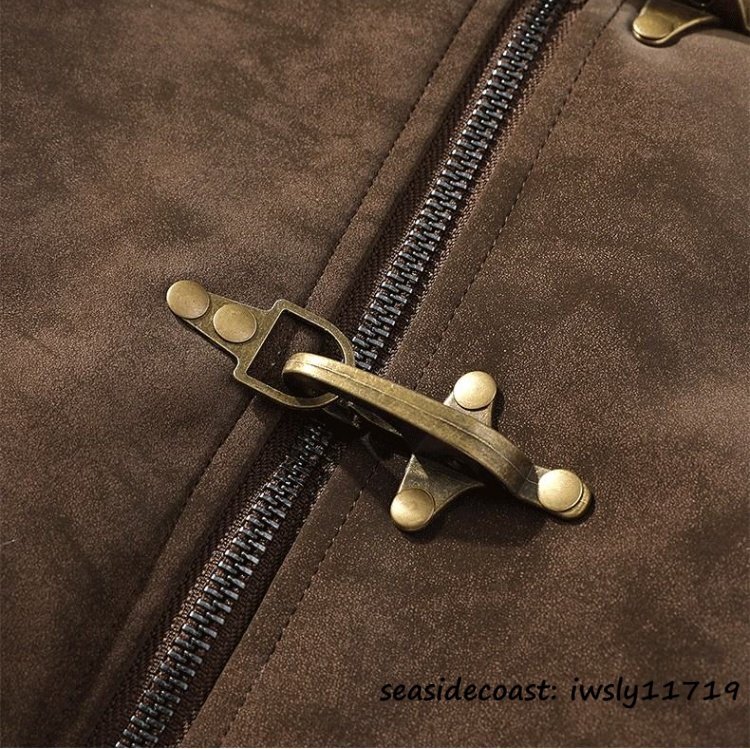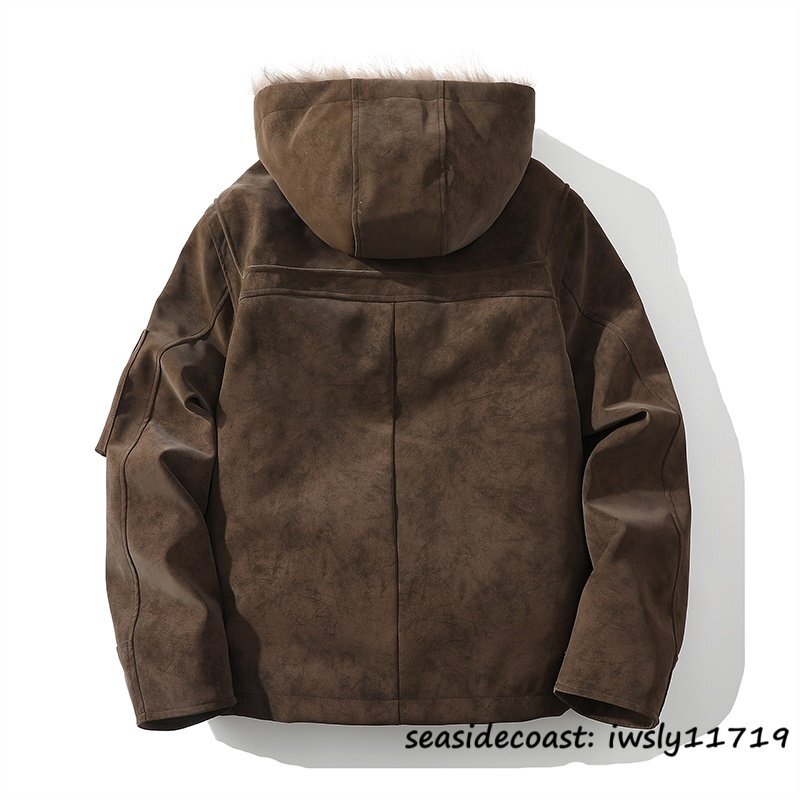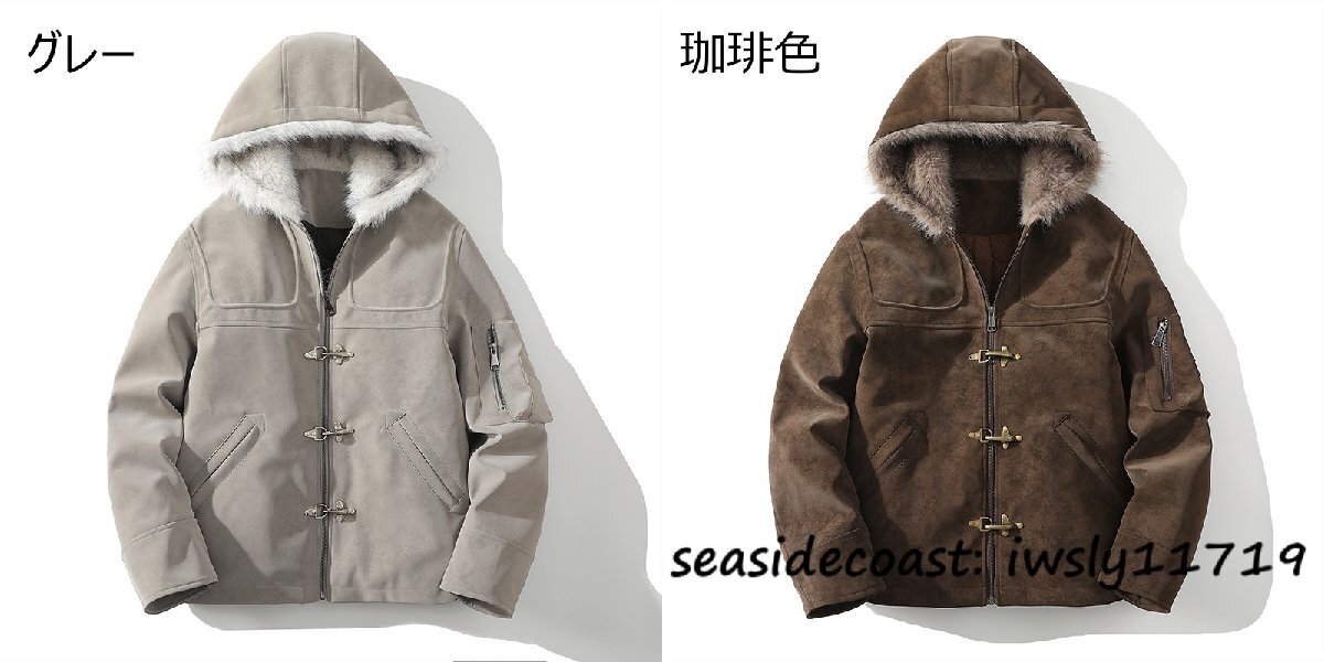 定価13万◆ムートンコート 秋冬新品 フード付き メンズ 保温 防寒 厚手 ダウンジャケット ファーコート ライダース ブルゾン グレー M