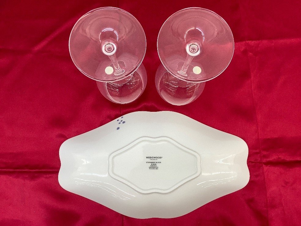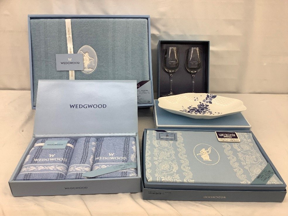 WEDGWOOD マイヤーボアシーツ/ジャガードシーツ/タオル/ワイングラス/皿 シミ有/ACB 未使用品