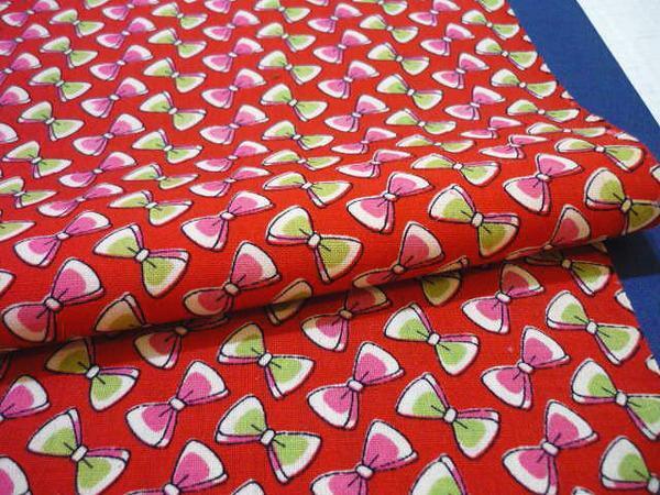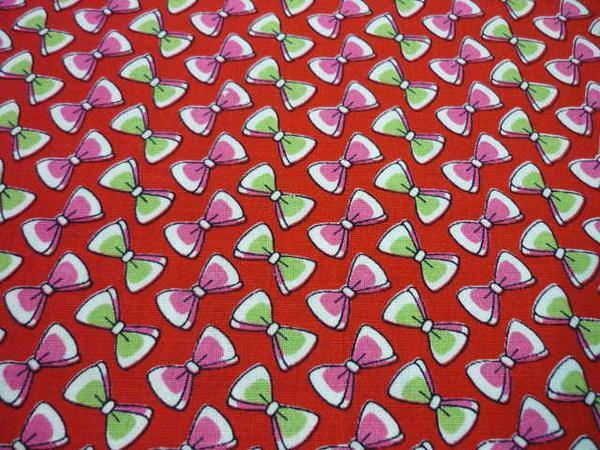 赤地に白・ピンク・鶯色のりぼんです。