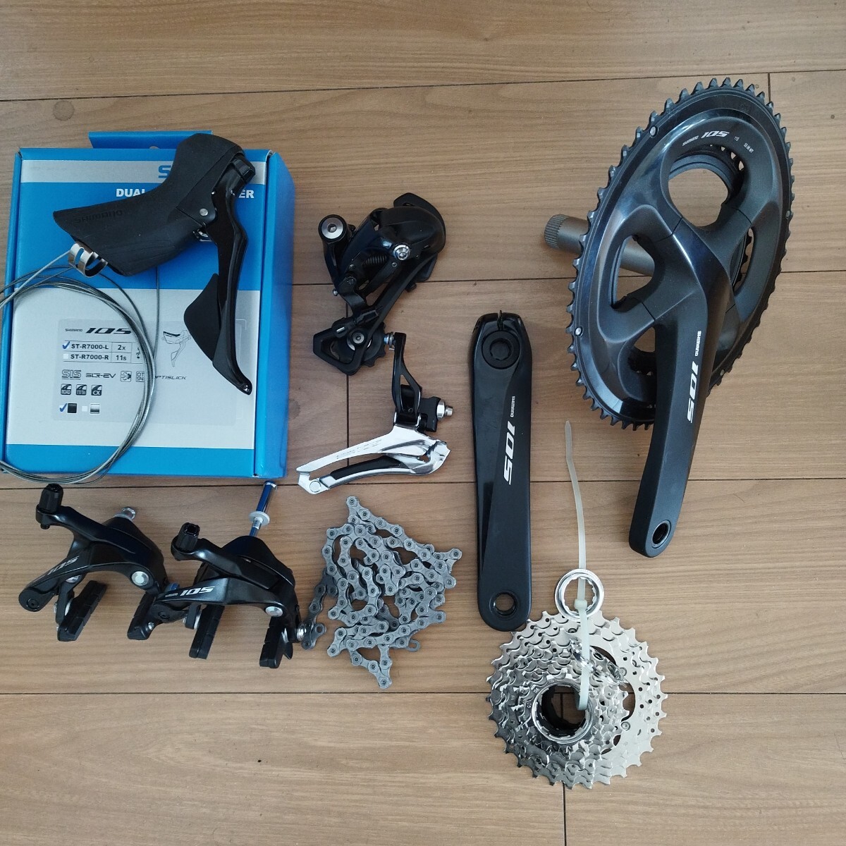 未使用完成車から外したシマノ 105 11Sメカニカルセットです。組付け,取り外しの傷が若干有ります。(ST-R7000左右.FD-5800直付け,RD-5800,BR-R7000 F&R,FC-R7000 52x36 172.5mm,CS-R7000