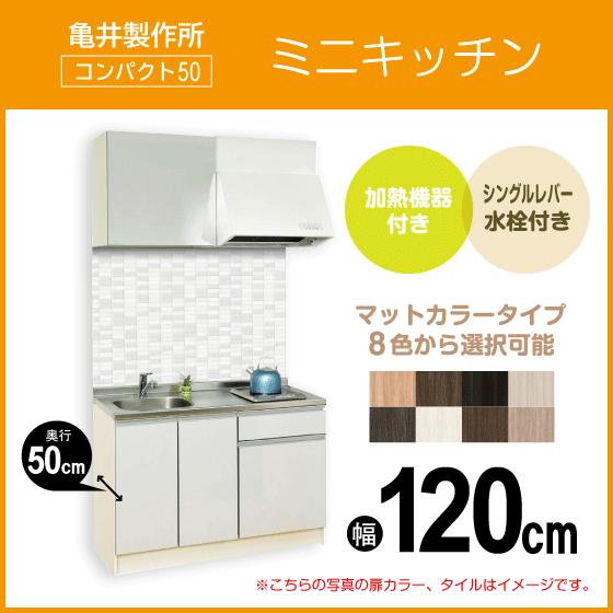 ★ 亀井製作所 ミニキッチン コンパクト50(扉カラー:マット) 間口120cm フルタイプ ★