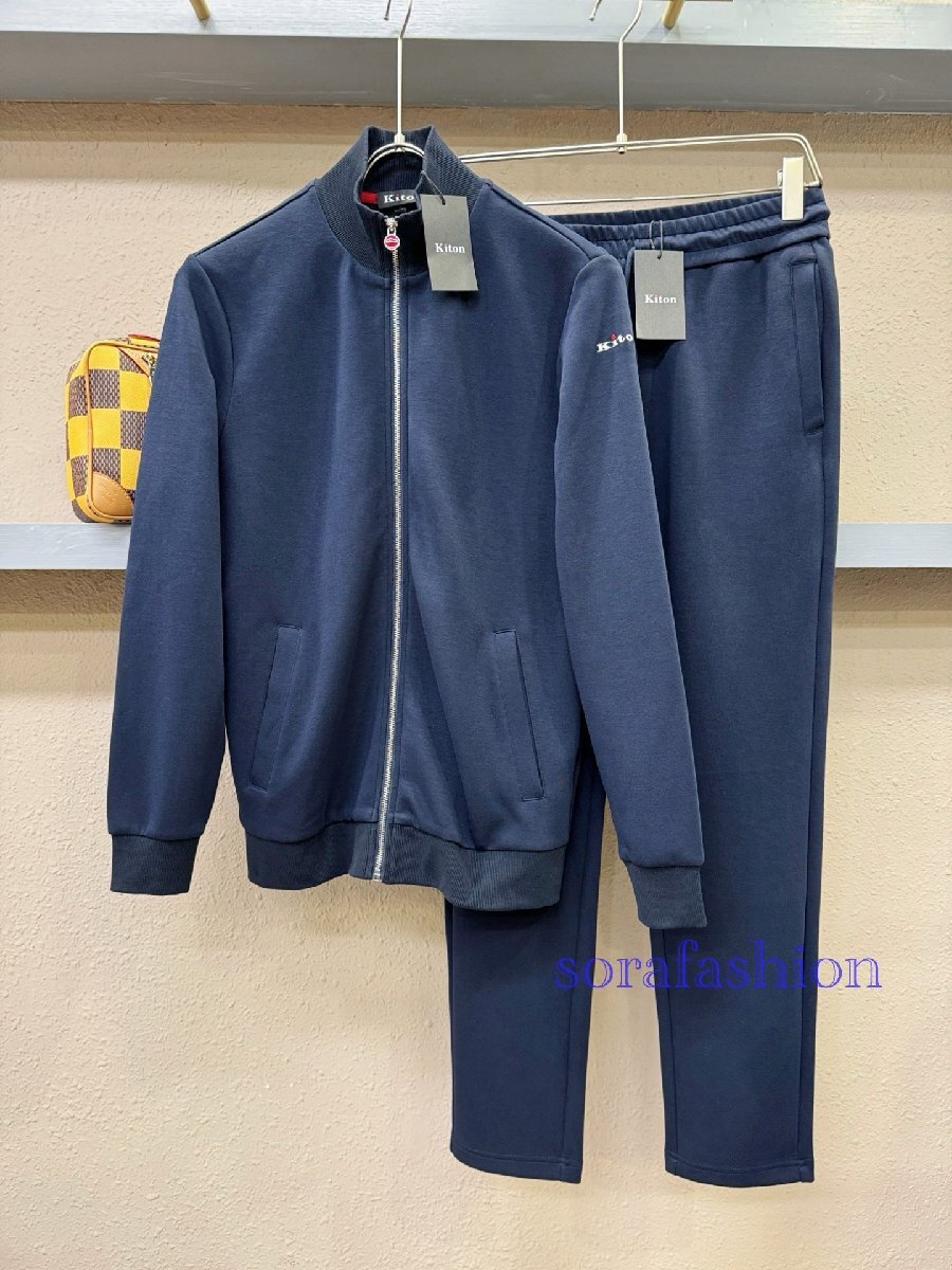 KITON キトン メンズセットアップ スウェット 上下2点セット ネイビー 2XL ジップアップジャケット ブルゾン ロングパンツ スポーツウェア