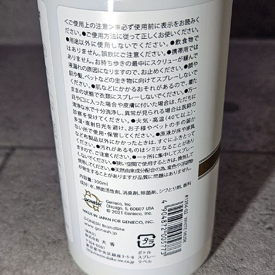 GONESH ファブリックミストNo.8とホワイトムスクの2種類をセットで