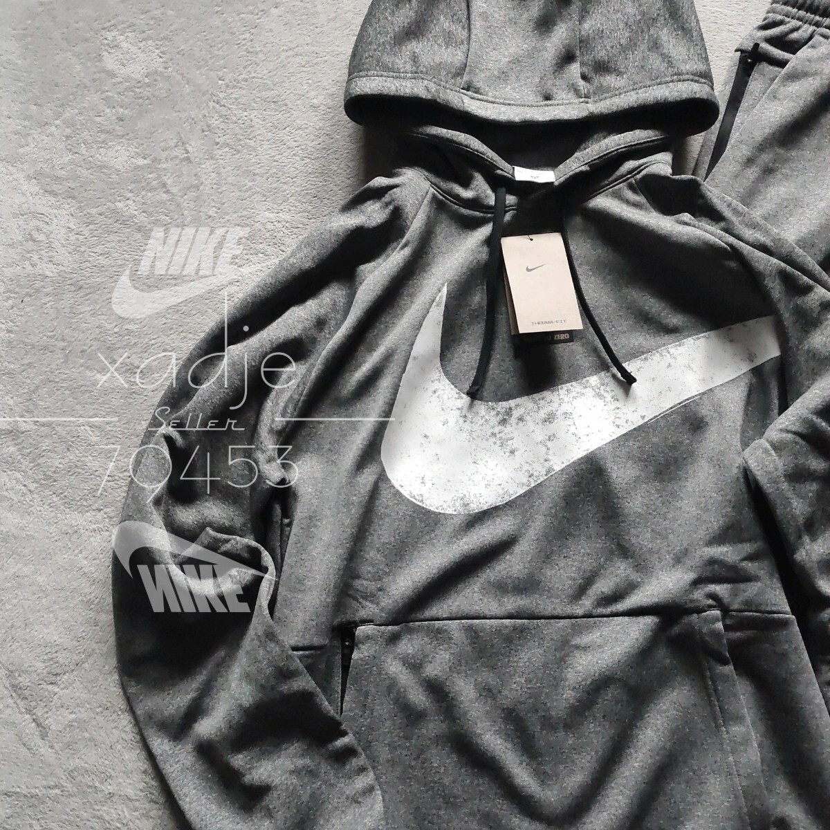 新品 正規品 NIKE ナイキ ビッグスウッシュ 上下セット サーマ パーカー パンツ セットアップ 灰 グレー 白 保温 裏起毛 定価19360円 XL