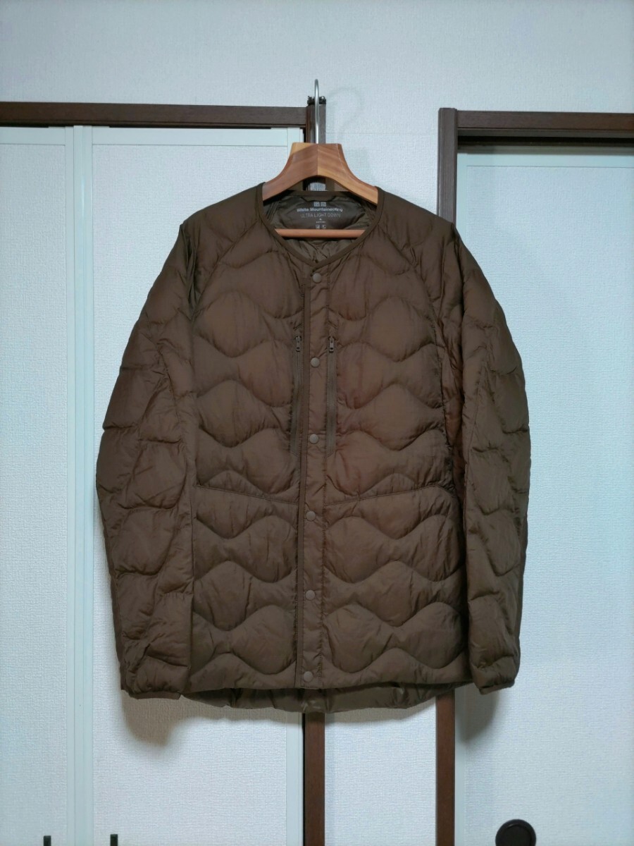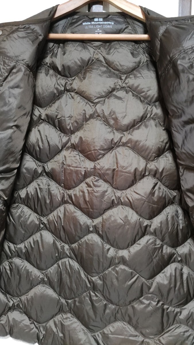 商品はUNIQLOWhite Mountaineering、ウルトラライトダウンオーバーサイズジャケット、DARK BROWNのXLサイズになります。