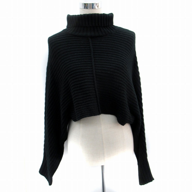 ケイビーエフ KBF アーバンリサーチ ニット セーター 長袖 ショート丈 タートルネック ドルマンスリーブ ONE 黒 ブラック レディース