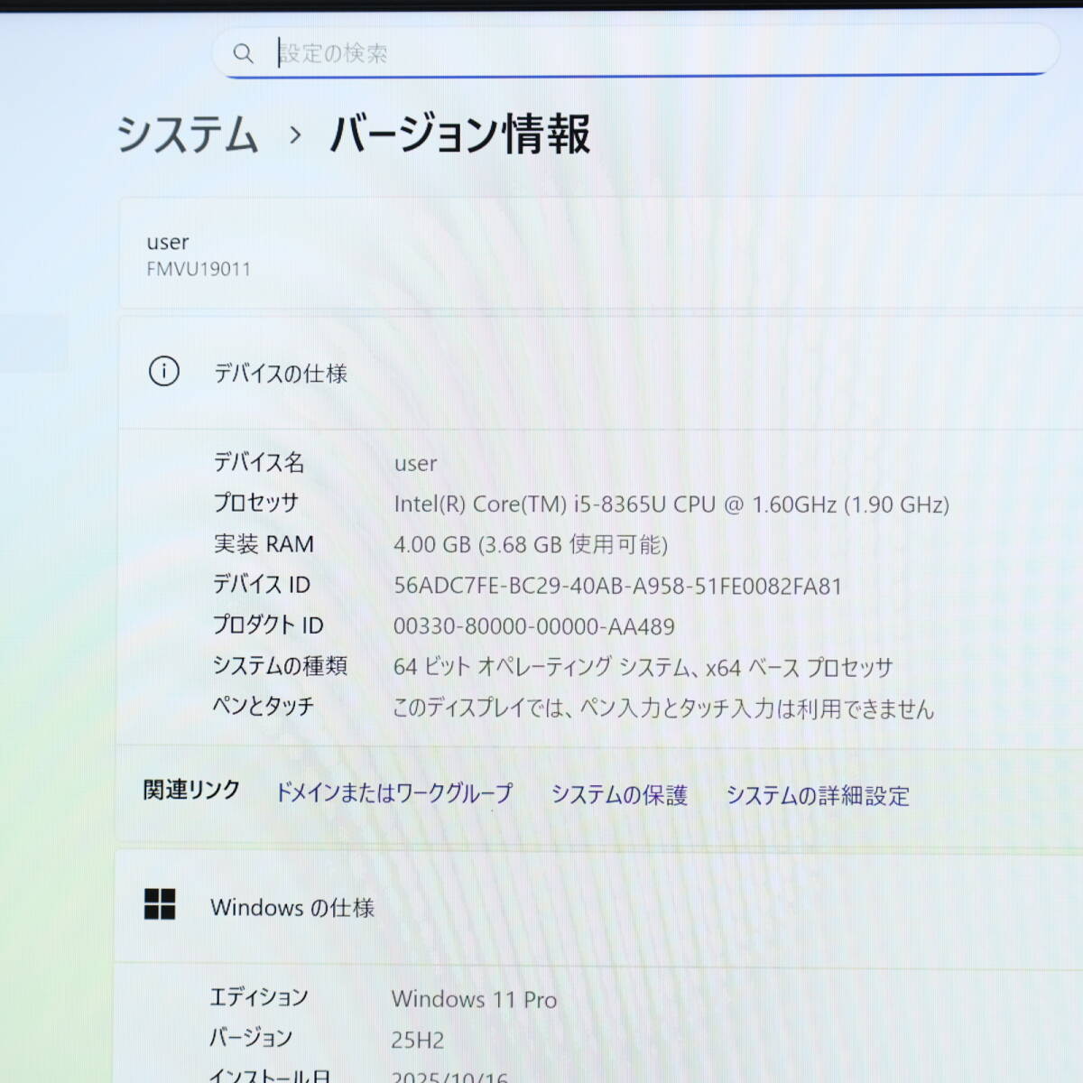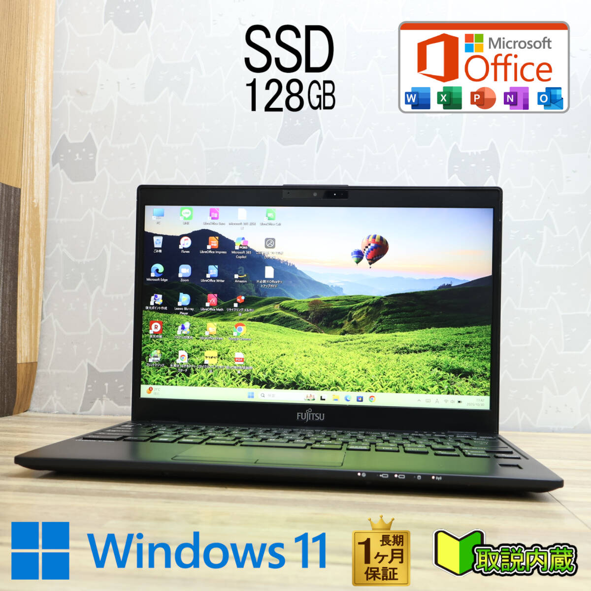 ★完動品 開けばキレイ 高性能8世代4コアi5!SSD128GB★U939/A Core i5-8365U Webカメラ Win11 MS Office 中古品 ノートパソコン★P94513