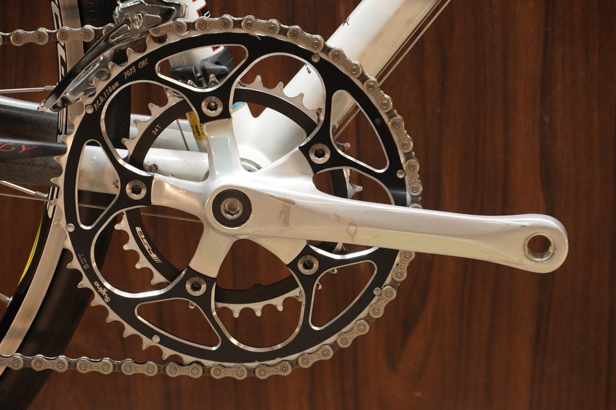 | 年式:2005 フレーム:カーボン フォーク:カーボン メインコンポ:CAMPAGNOLO VELOCE 2X10S クランク:SUGINO RD1 170mm (FSA) 50:34T ホイール:MAVIC COSMOS タイヤ:700 X 25 スプロケット:12T:25T ハンドル幅:400mm ステム長:100mm サイズ:51 トップチューブ長(C-C):550mm (※ホリゾンタル換算値) シートチューブ長(C-T):530mm 適応身長:170cm~180cm程度 実測重量:8.35kg ※掲載画像状態 |