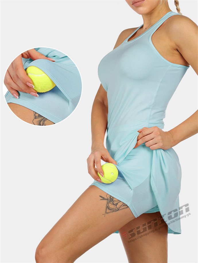【 商品スペック】■素材:ナイロン、スパンデックス■セット内容:ワンピース+ショーツ■産地:中国■仕様:◇吸汗速乾&UPF50&遮熱&制電◇春夏にぴったりな爽やかテニスワンピース◇体型カバーシルエットで体型を気にすることなくプレイできます。