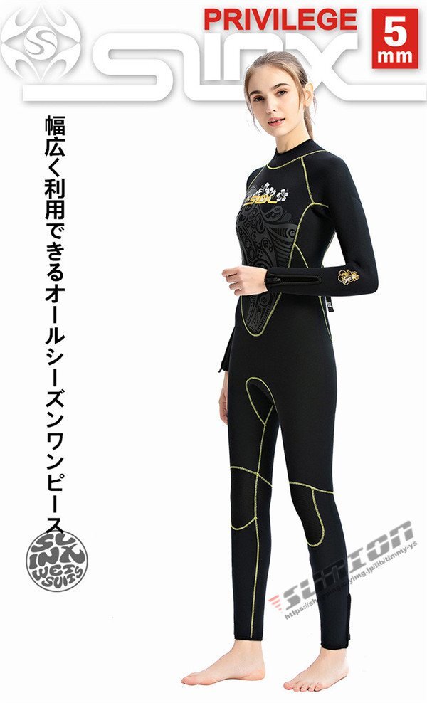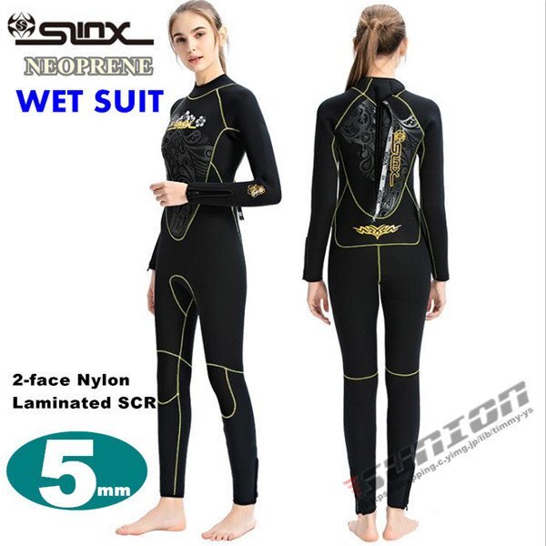 ウェットスーツ レディース 5mm サーフィン フルスーツ バックジップ ネオプレーン ダイビング マリンスポーツ