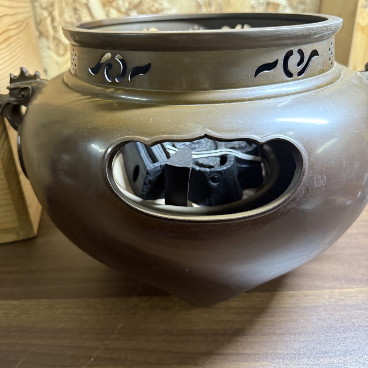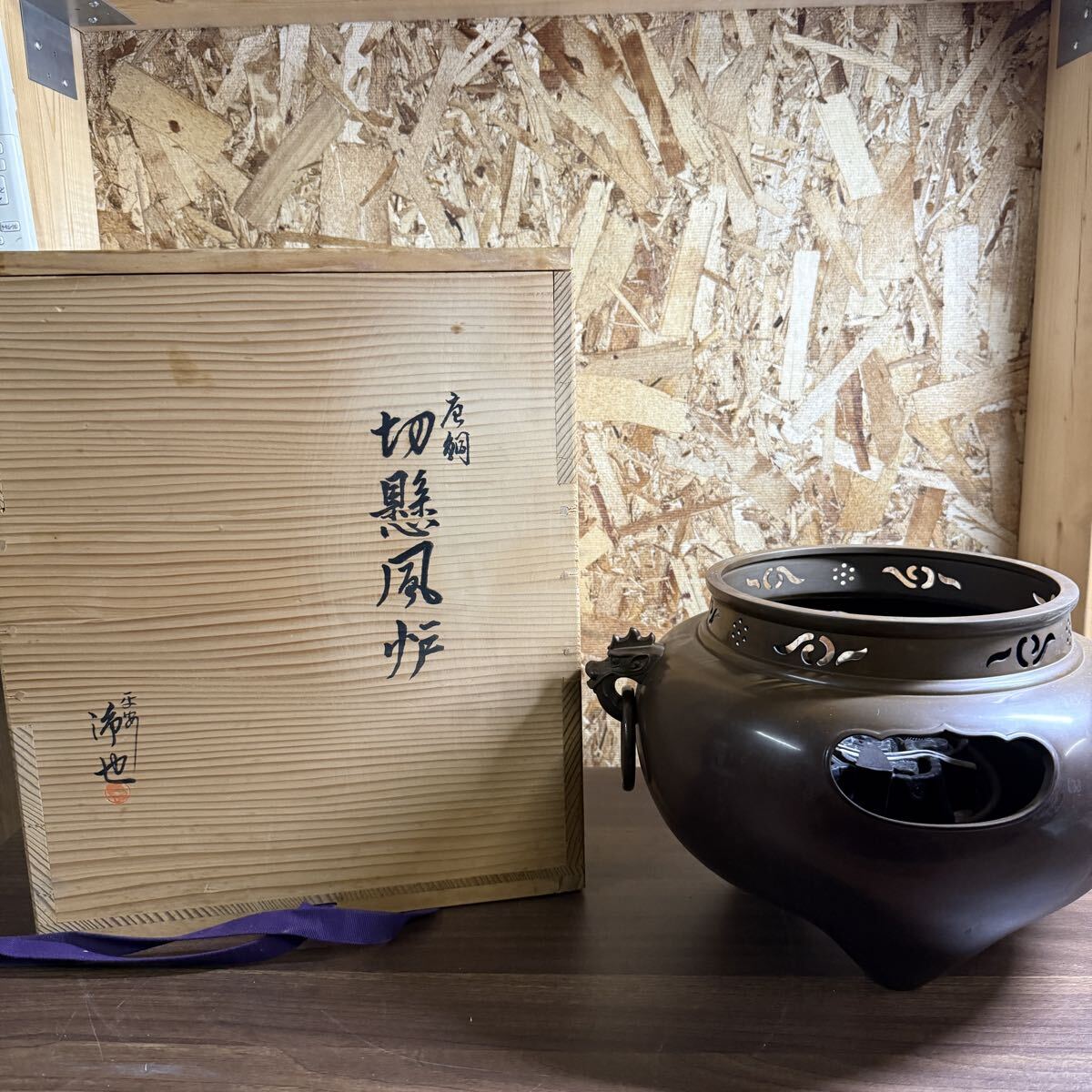 切懸風炉 唐銅 茶道具 電気式 アンティーク レトロ インテリア 中古品