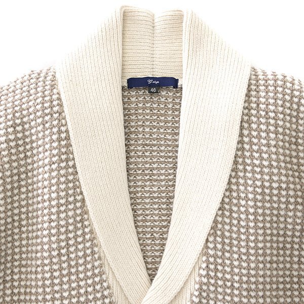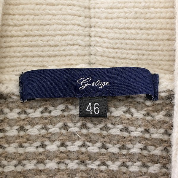 | 新品 未使用 紙タグあり 46サイズ(Mサイズ相当) ※商品に記載されたサイズ・寸法です※ 肩幅44cm 身幅53cm 袖丈62cm 着丈63cm ※伸縮性が高い素材のため多少誤差が生じる事があります※ 本体:毛80% ナイロン20% ベージュ×ホワイト |
