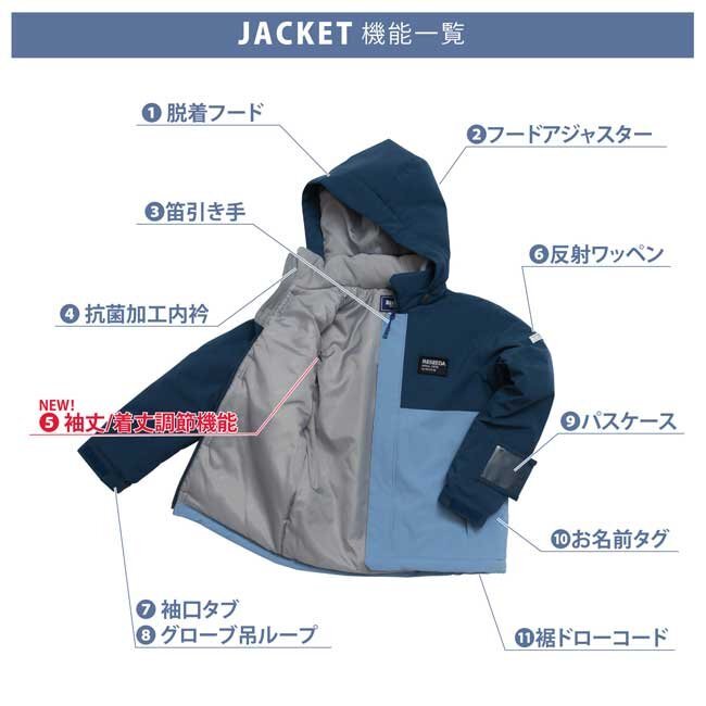 | 詳細 | スキーウェアといえばONYONE(オンヨネ)! ガールズに特に人気のグラデーション柄を様々なバリエーションで。 パンツは無地タイプなので、お好みのカラーで冬を楽しんで! スキーやスノボなどのウィンタースポーツの際にはもちろん、柔らかいカラーなので 通学時のアウターとしても暖かく包み込んでくれます。 冬の防寒着として、冬のアクティビティのお供としてオススメのウェアです。 耐水圧は10000mmの高機能、素材や柔らかいストレッチ素材を使用しておりますので 着心地も抜群です。 RESEEDAではお子様の安全に考慮し、JIS規格に対応して作られています。また、安心便利な機能を標準装備しています。(JIS規格やRESEEDA仕様に関しては機能説明をご覧ください。) 【カラー】 890G698 / PNKxN.BLU 666G186 / SKYxGRG 832G666 / LILxB.GRY 100G492 / WHTxMNT 【素材】 PUラミネートストレッチタフタ 【表地】ポリエステル100% (ポリウレタンラミネート加工) 【裏地】ポリエステル,その他 サイズ130/140/150/160 耐水圧10,000mm 【製品機能】 ・ストレッチ素材を使用:耐水圧10,000mmで柔らかく動きやすい♪ ・フード着脱可能:フードが引っかかったときには取れるので安心 ・フード:頭に合わせて調節する事で、ずり落ちを防ぎ視界が確保される安心感 ・フロントファスナー引き手笛:SOSや合図など様々な用途に使えます ・襟裏起毛トリコット素材:首部分は暖かく、さらに抗菌加工え衛生的で安心 ・サイズ調整機能:袖丈、着丈、股下丈の調節が可能。ストッパー付きで楽々調節♪ ・袖部分のサイズ調節紐先はゴムになっているのでとっても動きやすく快適 ・左袖リフレクター:光を反射するワッペン付き。暗くなっても安全性バッチリ ・パスケースポケット:リフト券をそのまま入れられる(袖内側に収納可能) ・裾部分ゴムコード:ゴムコードを引くことで裾囲を縮める事が可能なので暖かく快適 ・ジャケット脇ポケット:ZIP付きポケットで物が落ちにくい ・パンツサスペンダー:脱着が可能!用途に合わせて変えられ便利 ・パンツウエスト部分:両脇のタブでウエスト周りを縮めることが可能 ・パンツシーム:パンツお尻部分に縫い目が無い仕様でお尻をついても濡れにくい ・パンツ右脇ポケット:抗菌加工素材を使用。衛生的で安心 ・パンツ足口インナースパッツ:雪の侵入を防ぐので快適に着用可能 ・お名前タグ:ジャケット・パンツの左脇内側部に2名分の記名スペースあり。おさがりにも対応可能 ・パンツエッヂガード:擦り切れやすい足裾部分の生地を二重に 引っ掛かりなどによる事故のリスクを軽減するため、日本産業規格が定めた基準をクリアしています。 オンヨネ ONYONE RES67003 ジュニア スキーウェア キッズ スノーウェア 子供用 男の子 女の子 上下セット 防水 撥水 耐水圧 中綿入り スキー スノーボード スノボ スキースーツ スノースーツ スキー授業 スキー教室 雪遊び 通学 防寒 保温 暖かい ブランド 人気 おしゃれ かっこいい かわいい サイズ調整 成長対応 軽量 動きやすい 冬 アウトドア スポーツ スキー用品 ウェアセット |