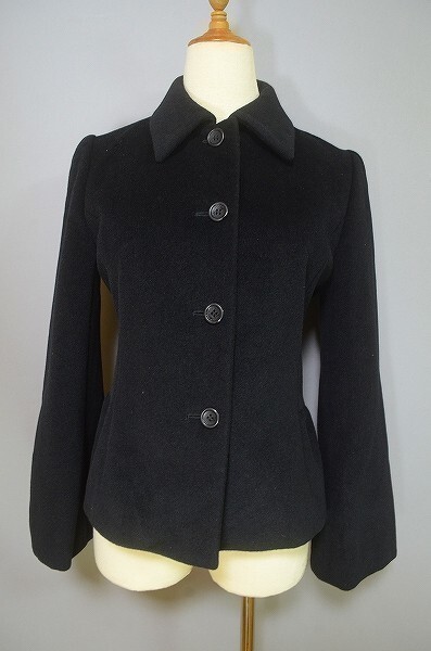 A1779/美品 秋冬 ef-de エフデ 藤井毛織 アンゴラ ウール 起毛 ワイド袖 ワイドスリーブ シングル ジャケット ハーフコート 9黒/レディース