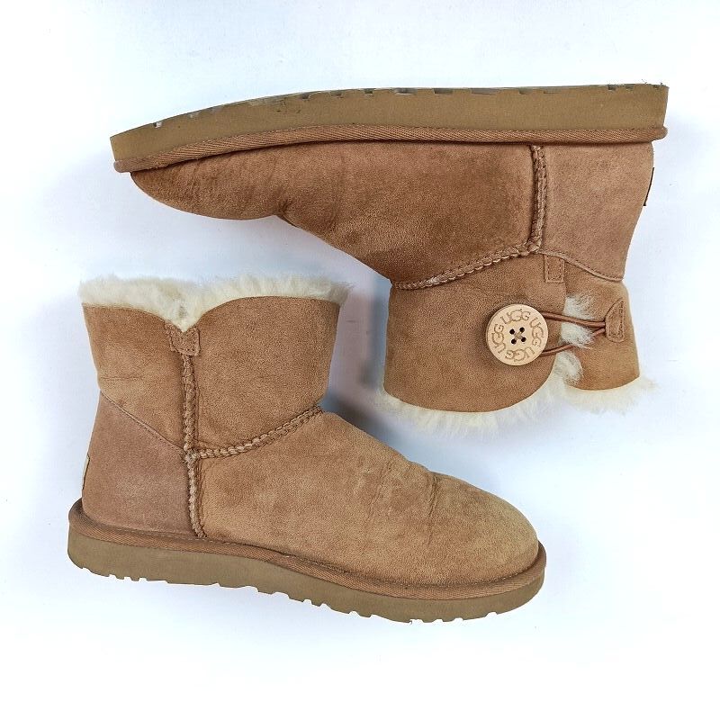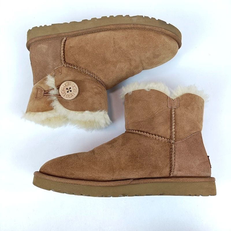良品 UGG アグ ムートンブーツ 24cm ブラウン 茶 ショートブーツ S/N3352 F20014F 茶 レディース USA7 UK5.5 EU38