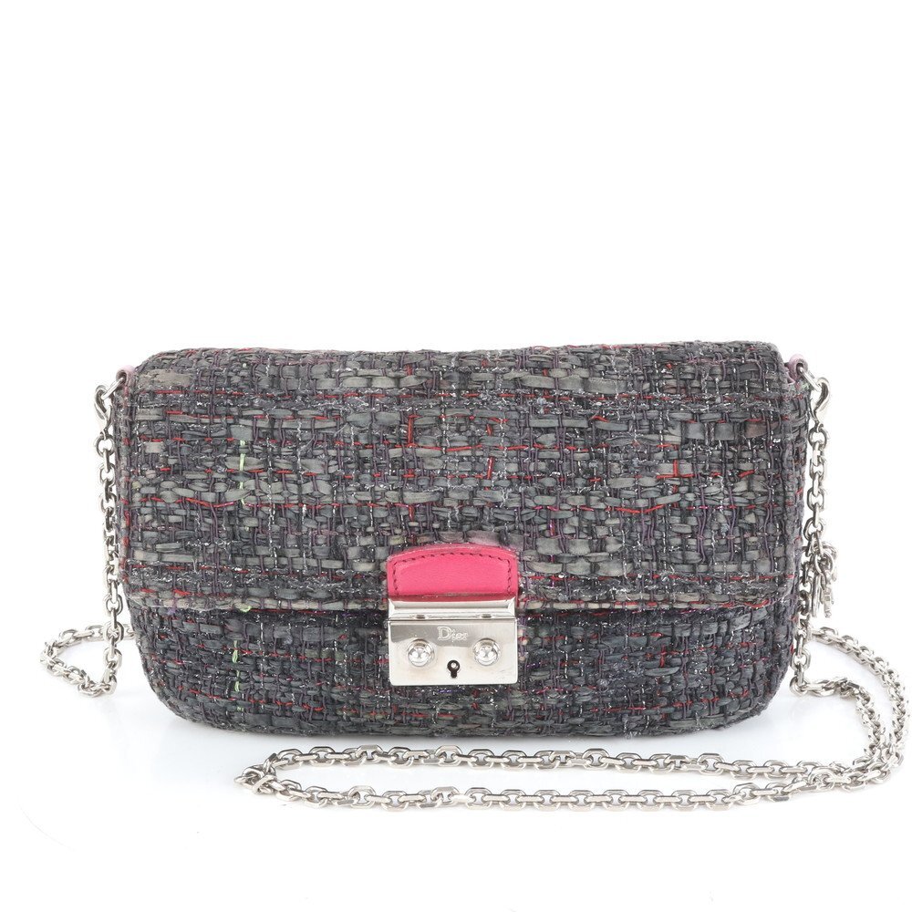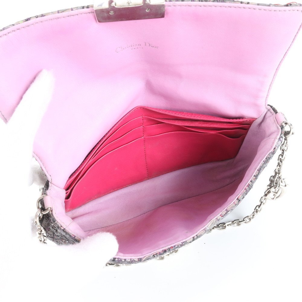 1円■極美品■クリスチャンディオール ニューロック ツイード レザー シルバー チェーン ショルダーバッグ 斜め掛け レディース ERE DC32-7