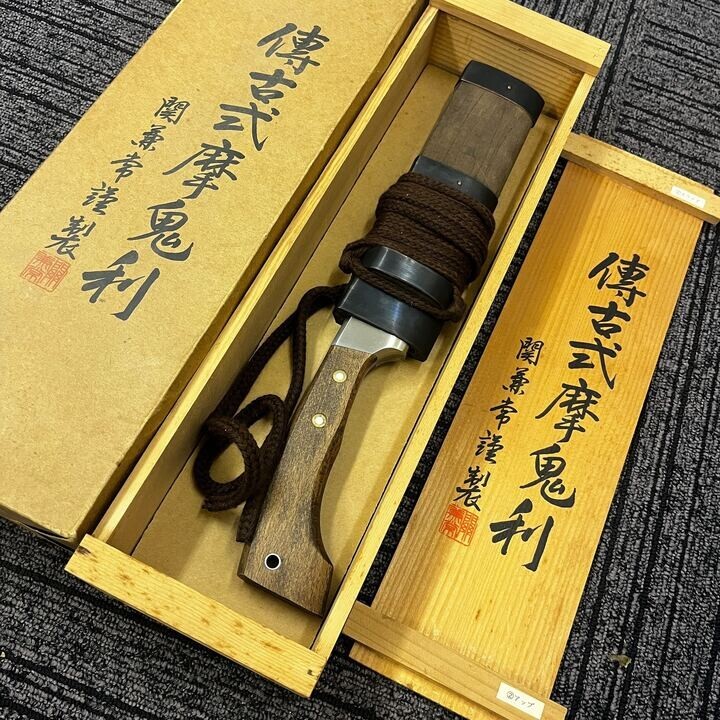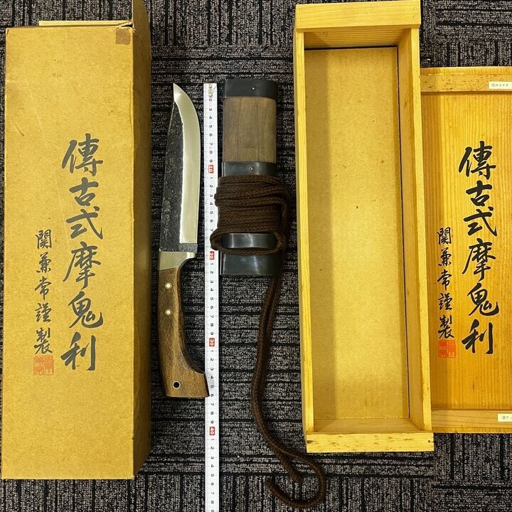 ◆レア コレクション◆傳古式摩鬼利 関兼常 作 マキリ ナイフ サバイバルナイフ 刃渡り約20cm フルタング ケース有  mc01075930