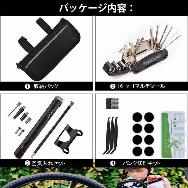 【多機能修理キット】: パンク修理キット+ミニポンプ(米式/仏式バルブ)+16イン1マルチツール+収納バッグ。多機能充実の4セットです。 自転車パンク応急修理対応できます。 【パッチ修理簡単、粘着剤不要】: 通勤、通学、また旅行の時にパンクする恐れがありますよね。自転車修理キットがあれば自分でパンク修理ができ、自転車屋さんを探す必要もなくなります。粘着剤不要のパッチは、緊急時の対応にとても重宝します。 【持ち運び便利】: 収納用の専用バッグは、マジックテープで自転車に装着可能!この自転車修理工具セットは、軽くて小さく携行生が良いので、ツーリングや通勤などに携行するのに便利です。緊急時に使うためのものですので、常に持ち運ぶ必要があります。 【携帯式空気入れ】: 仏式?米式両方バルブ対応の携帯用空気入れ、ロードバイク、クロスバイク、マウンテンバイク、ママチャリまで自転車大部分で使用でき、様々な自転車のタイヤに勝手に切り替えてとても役に立ちます。そして、自転車ではなく、また、ボール、風船/浮き輪なども適切しです。 海外インポートなので、細かいホツレや汚れが有る場合がございます。そして,宅配便で発送しますので,箱付きの商品は角部分が凹む可能性がございます。ご理解の上ご購入ください。 ★お支払い方法はYahooかんたん決済しか選べないので,ご了承ください。 ★発送について★ ①基本は佐川急便で,ご入金が確認取れたあと,3-7日以内に発送させていただきます。場合によって1日2日ぐらい延長する可能性がございます。ご了承ください。 ②小物は他の宅配会社に頼む可能性がございます。その場合は事前に連絡させていただきます。 ③送料に付いて:沖縄、北海道、一部離島は別途料金が発生します。ご了承ください ★注意事項★ ご質問へのご返信は、営業時間外、また担当者不在などによりご返信が遅れる場合もございますので、あらかじめご了承ください。 質問欄からの値下げ交渉、返信はご対応出来ませんので予めご了承下さい。 在庫が切れた時,オークション自体を早期終了する場合がございます。 商品発送完了時に評価を行っております。評価の必要ない方は予めご連絡くださいますようお願い申し上げます。 ご連絡をいただけないまま27日以上過ぎました場合、落札者様の都合で削除させていただく可能性がございます。その場合自動的に悪い評価がついてしまいますのでご了承ください。 オークション管理上、商品の同梱の際の送料はオークション毎にかかります。ご了承お願いいたします。