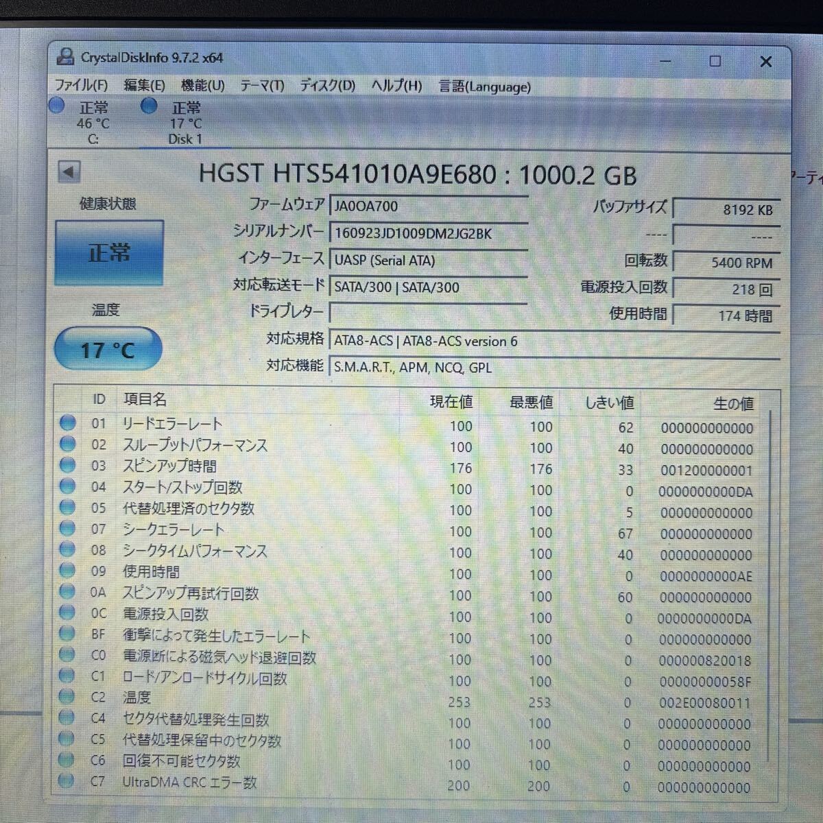 ノートパソコンから取り外したもので、CrystalDiskInfoにて「正常」と表示されていることを確認済みです(写真3枚目)
