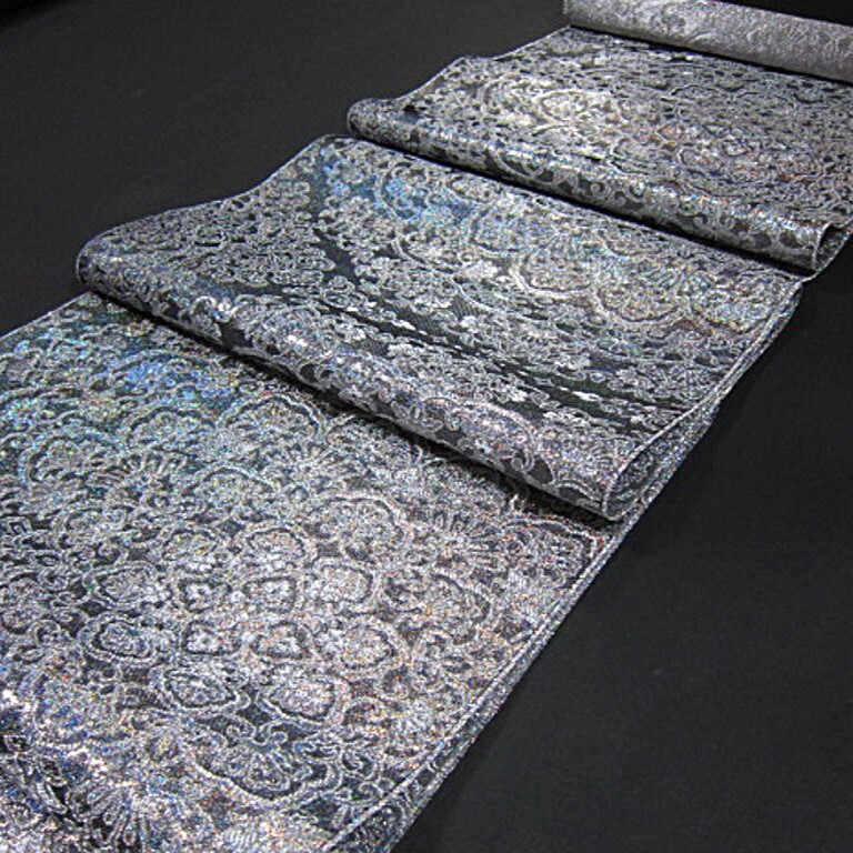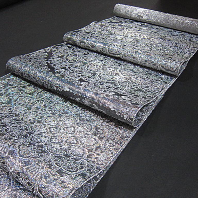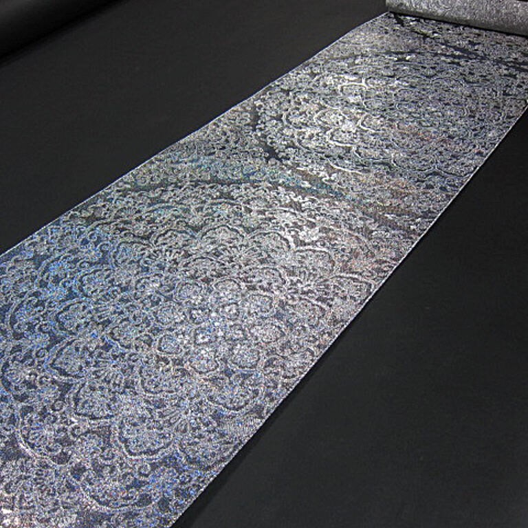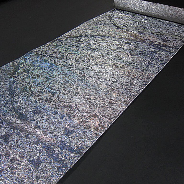 新品未仕立 西陣織丸巻六通柄袋帯です。 華紋の意匠がエレガントに織り上げられた素敵な帯です。織りあがったばかりのお品です。大人女性の装いに相応しい一品。訪問着、色無地、小紋、付下げと、お使いいただけるかと思います。お出かけ・パーティー・観劇などにいかがでしょうか。こちらですが、丸巻の袋帯の為裏地などは、ついておりませんのでその点ご了承の上ご入札ください