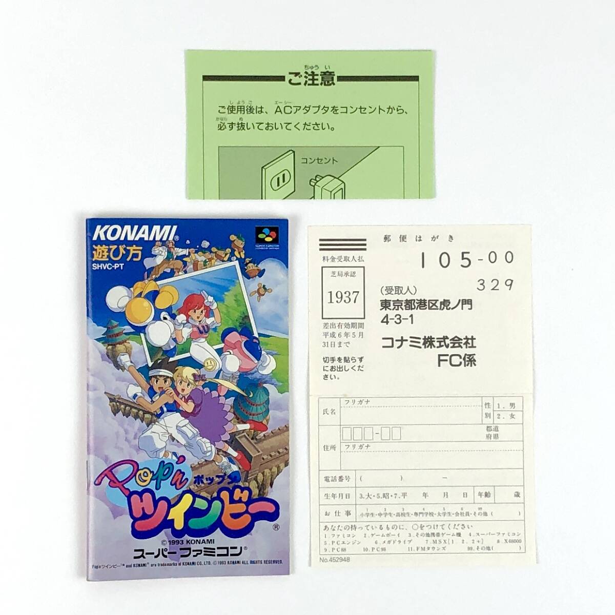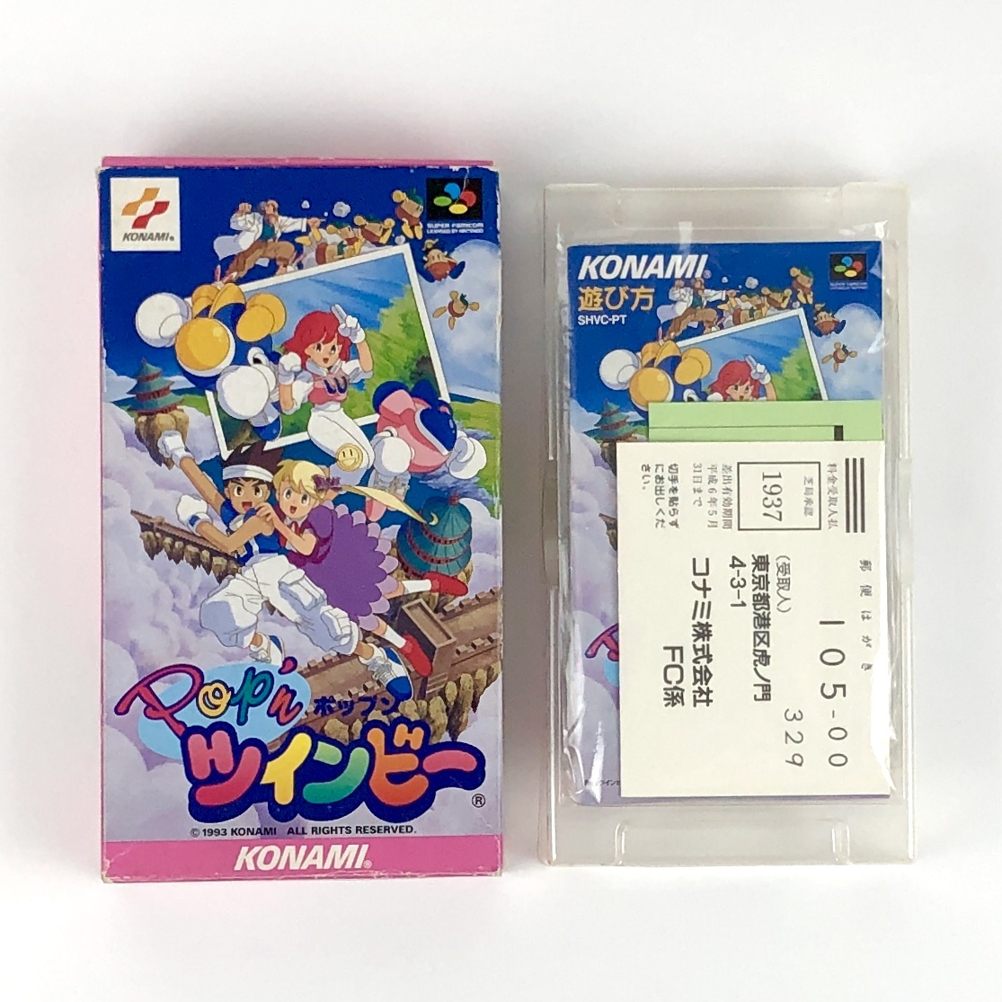 スーパーファミコン ポップンツインビー 箱説・ハガキ付き 痛みあり 動作確認済み コナミ Super Famicom Pop'n TwinBee CIB Tested Konami