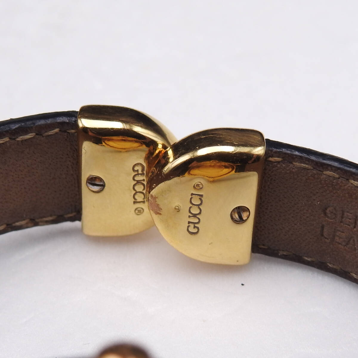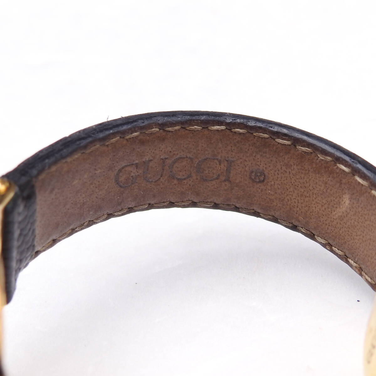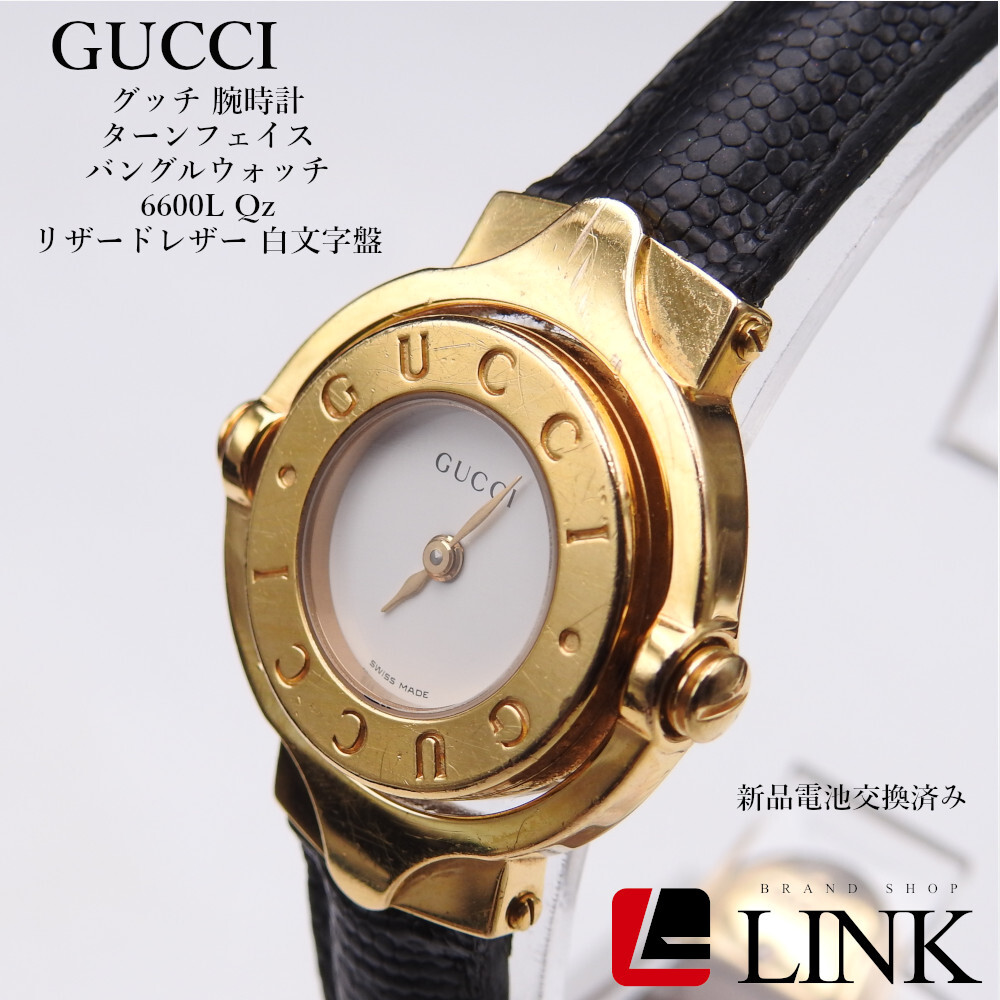 稼働確認済 電池交換済 GUCCI グッチ 腕時計 ターンフェイス バングルウォッチ 6600L リザードレザー 白文字盤 クォーツ レディース 純正