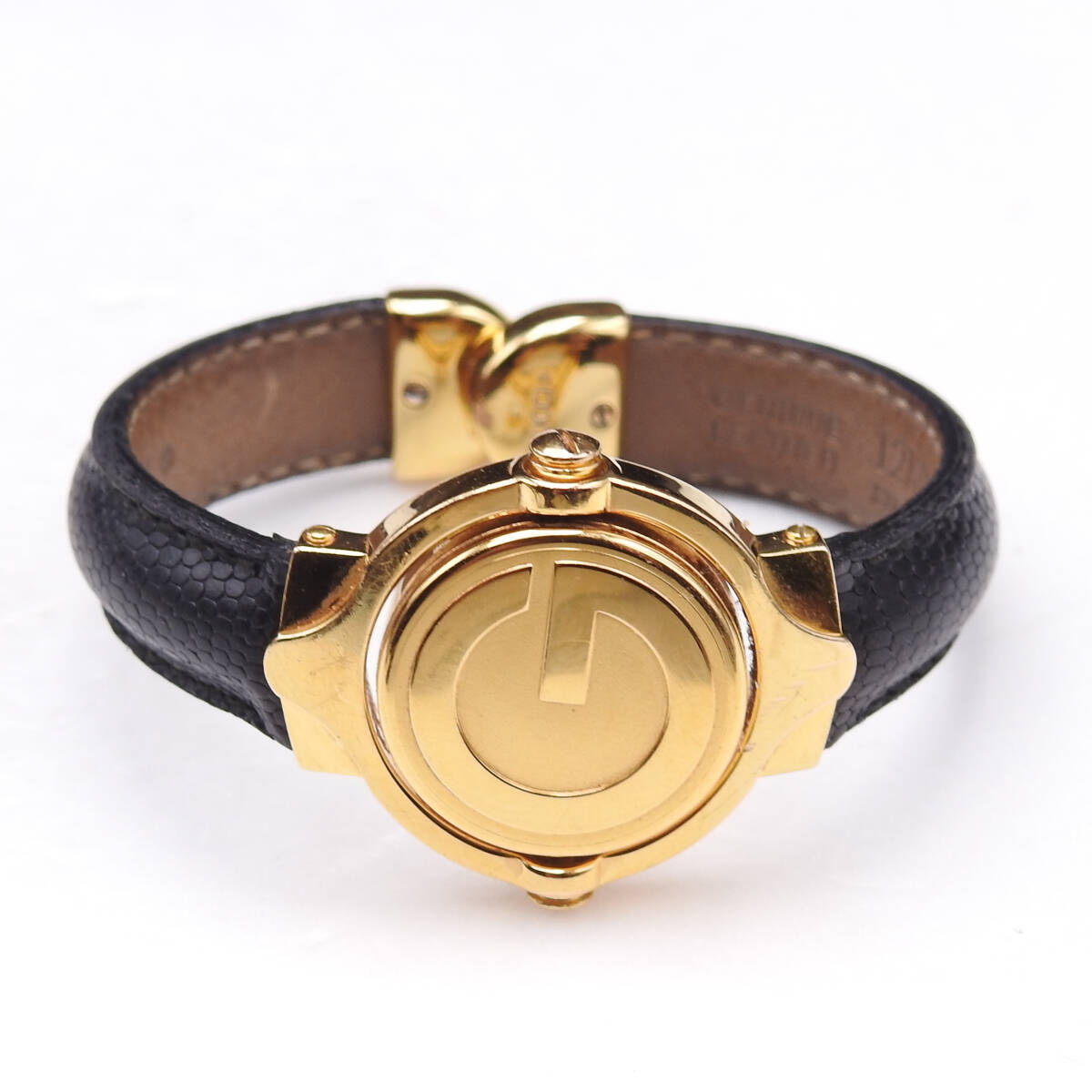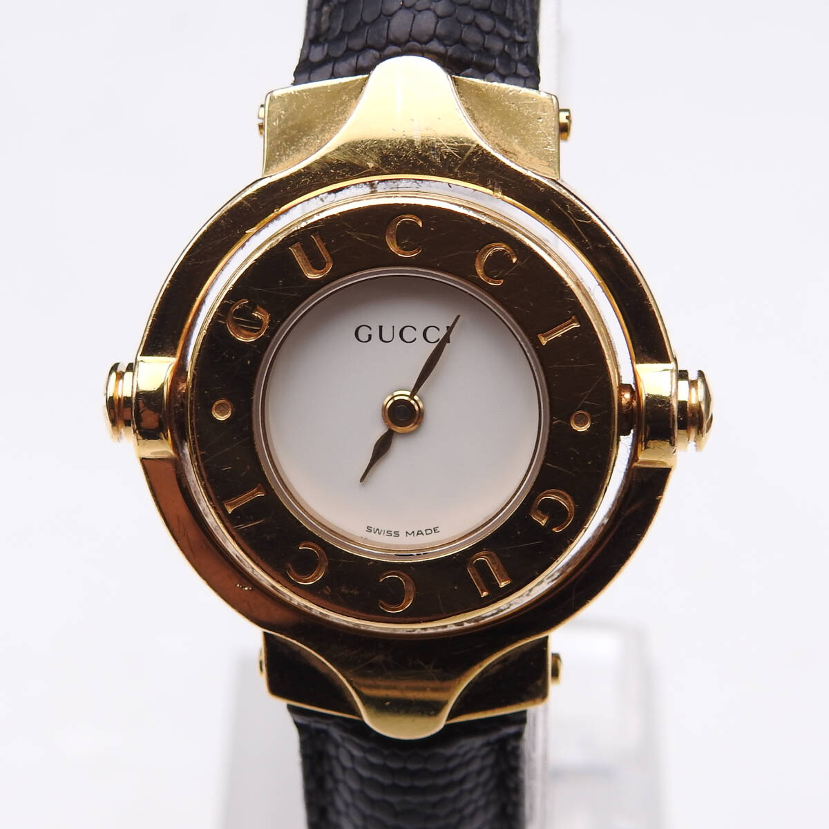 【商品名】【稼働確認済】電池交換済 GUCCI グッチ 腕時計 ターンフェイス バングルウォッチ 6600L Qz リザードレザー 白文字盤 クォーツ レディース 純正レザーベルト