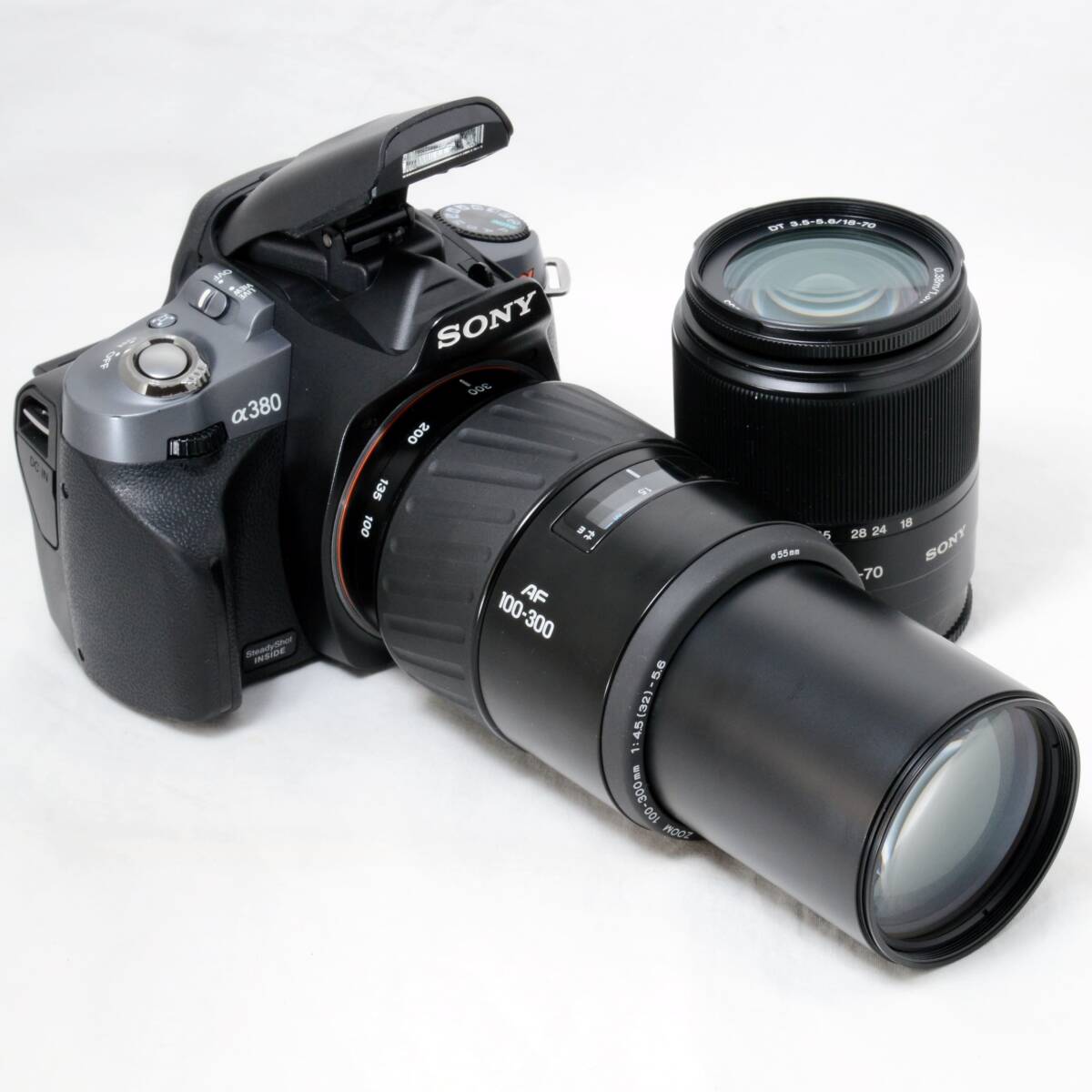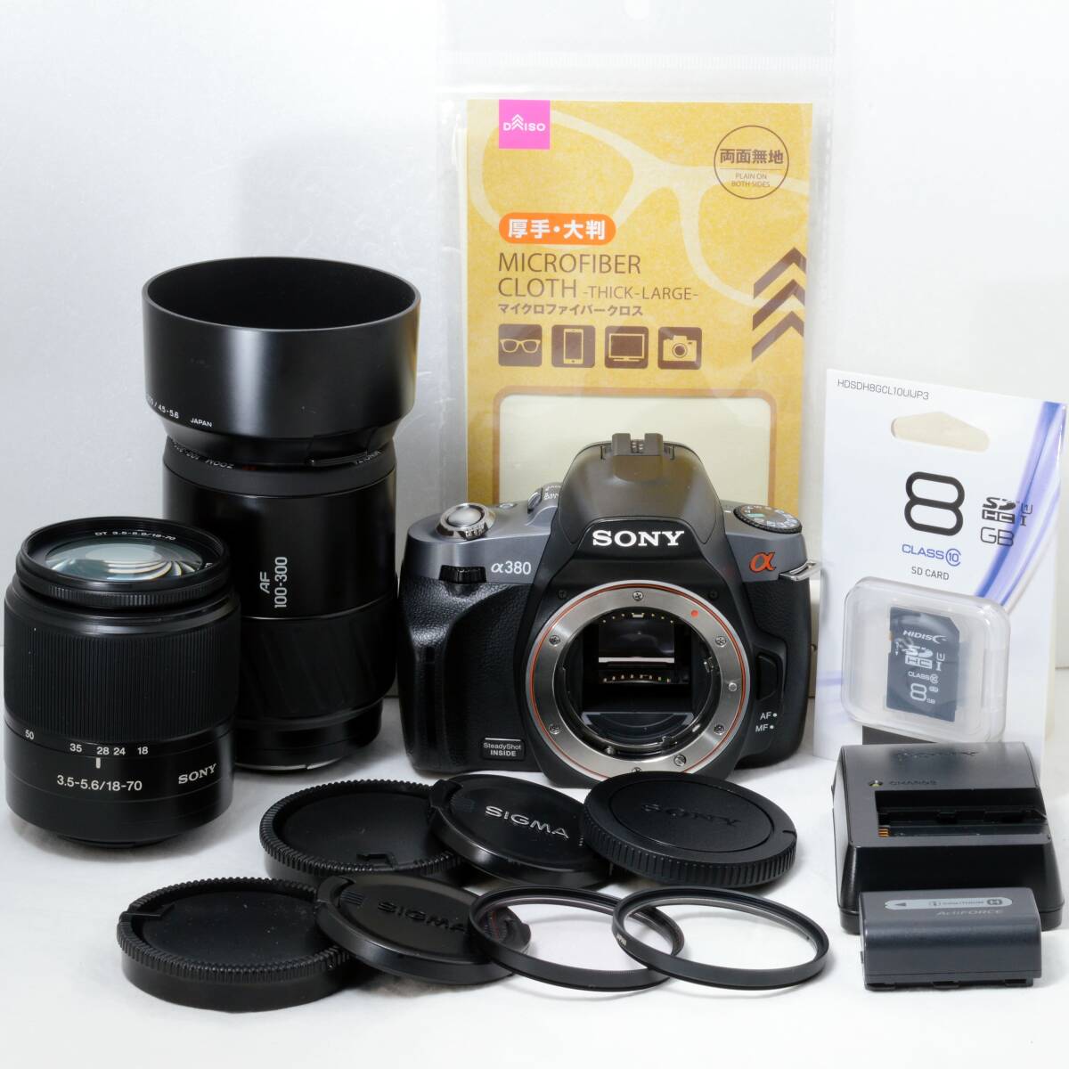 ★美品★SONY ソニー α380 18-70mm 100-300mm ダブルズームセット 8GB 新品SDカード付き 可動式液晶搭載 初心者 おすすめ