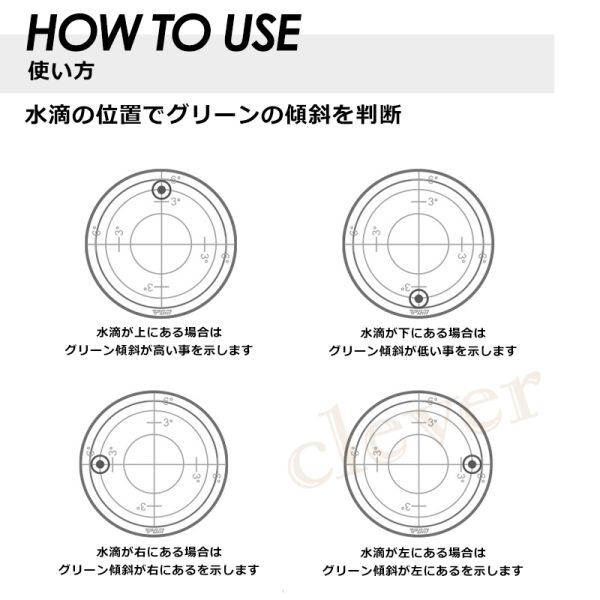 水泡の位置で傾斜を確認出来ます。より高い方に気泡がかたよります。気泡が中心に来れば水平です。