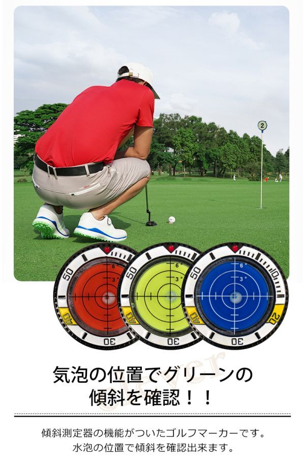 3色水平器付マーカー ブルー ゴルフ マーカー 水平器 非磁性 パッティング ガイド 高精度 水準器 多機能 ゴルフマーカー パター練習
