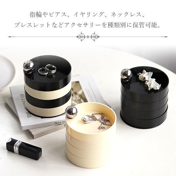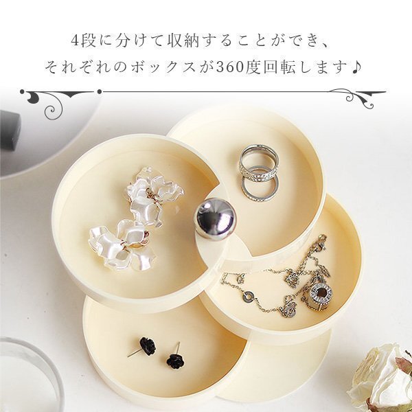 アクセサリーケース 4段 円形 回転 円形 アクセサリートレイ ジュエリーボックス ベージュ 小物入れ 北欧 おしゃれ コンパクト 卓上 収納