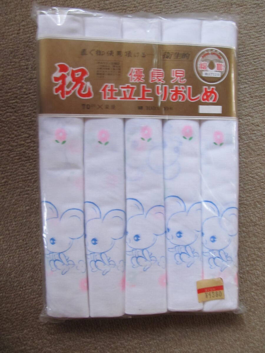 商品のねずみ柄?の平織り(晒)祝仕立て上がりおしめ