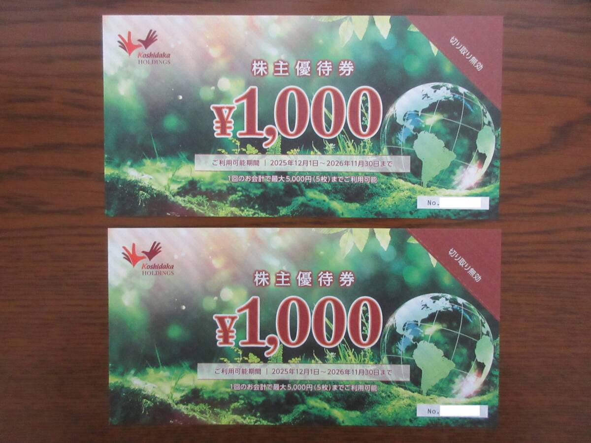 コシダカ(カラオケまねきねこ) 株主優待券 2,000円分(1,000円×2枚)です。