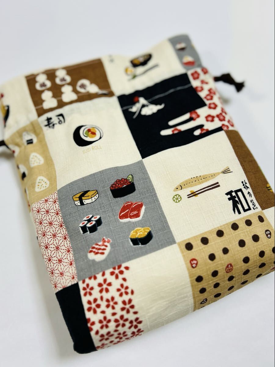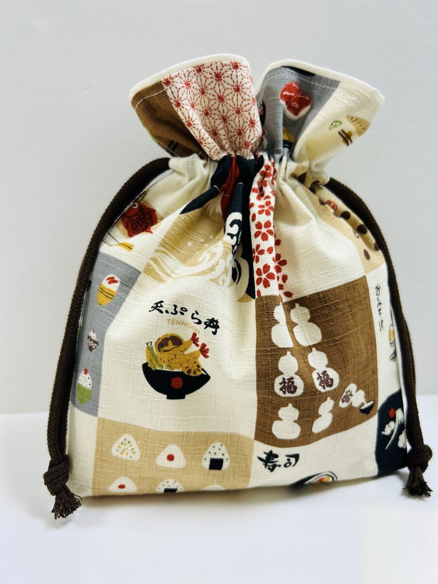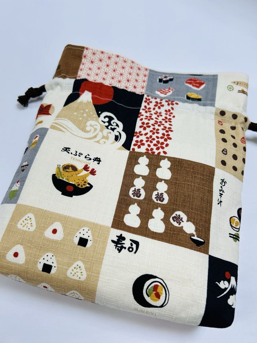 ハンドメイド 巾着袋 和柄 和食 さんま 寿司 天ぷら丼 富士山