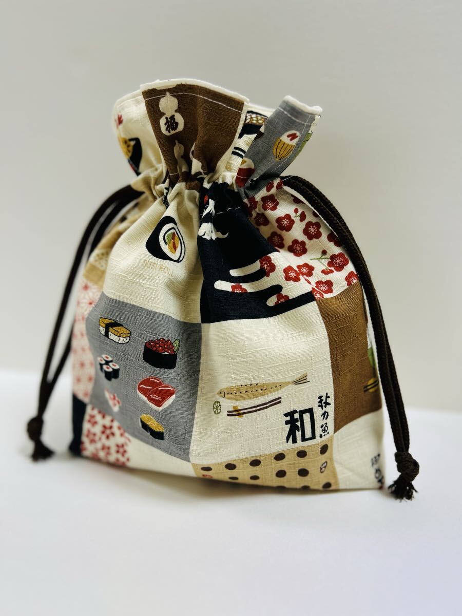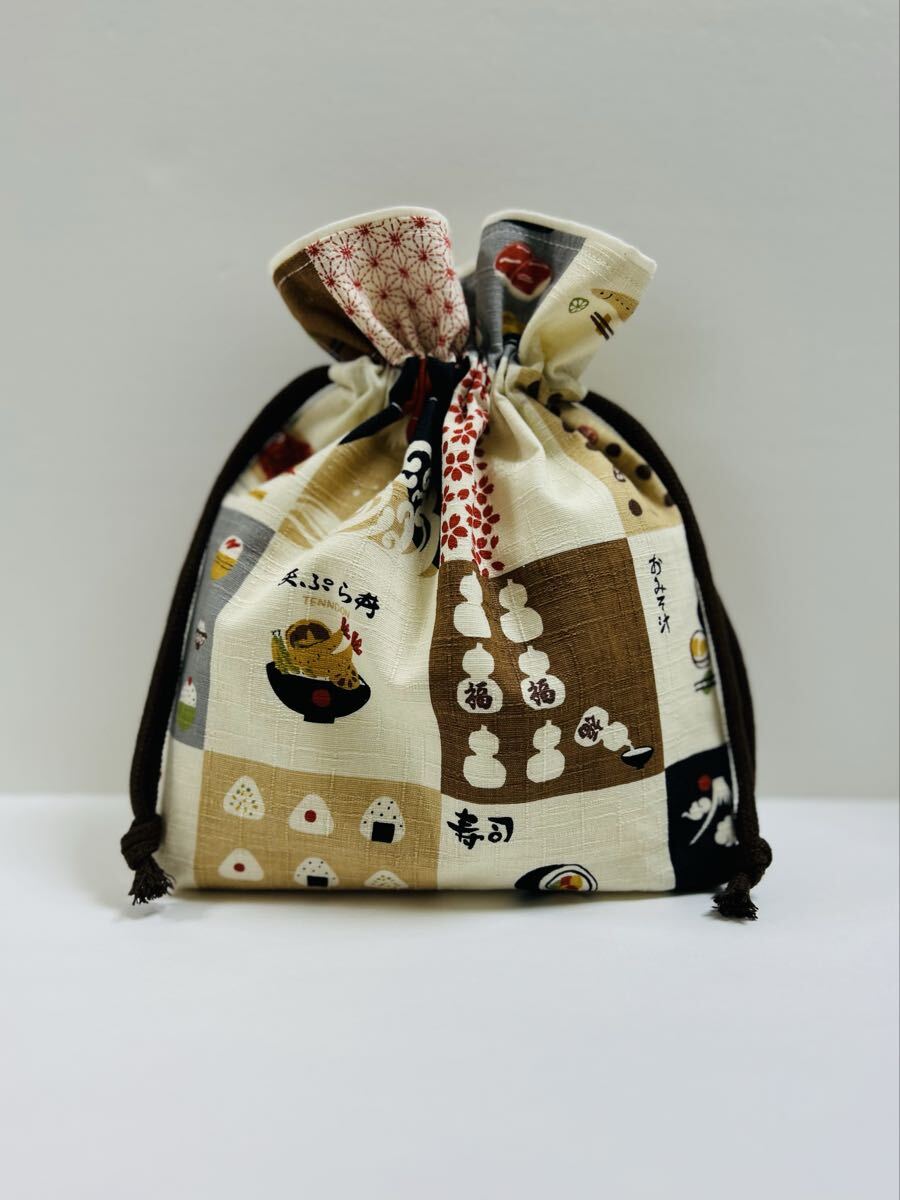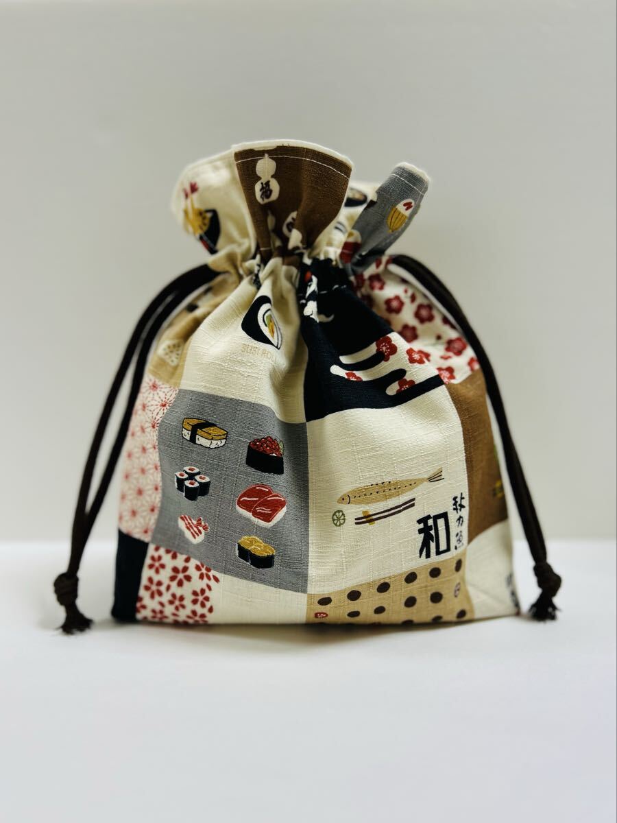ハンドメイド 巾着袋 和柄 和食 さんま 寿司 天ぷら丼 富士山