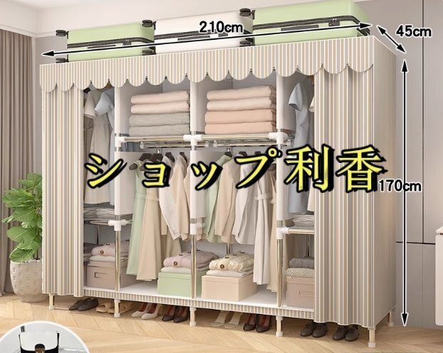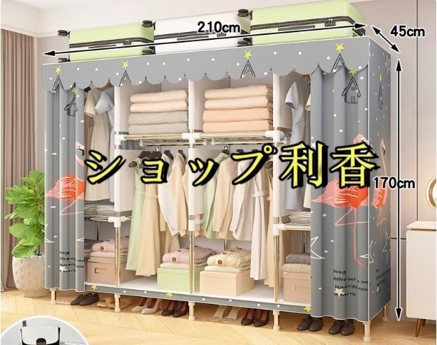 商品説明 商品説明 【商品詳細】★状態:新品未使用【サイズ】幅210×奥行45×高さ170cm。フレーム耐荷重:200kg。シングルやカップル用大容量ワードローブです。【素材】直径20mmの厚いスチールパイプ、ホコリがつきにくいオックスフォード生地のカバー、強化プラスチックの