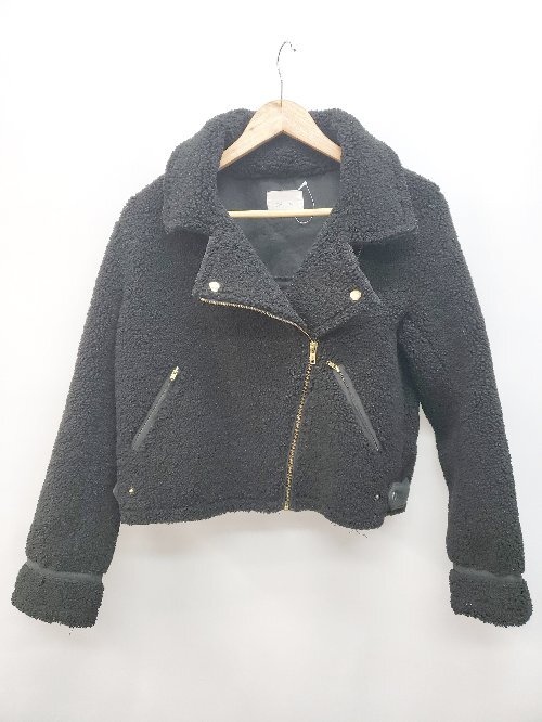 ◇ MIIA ミーア ジップアップ ボア ショート丈 かわいい 長袖 ジャケット サイズF ブラック レディース P