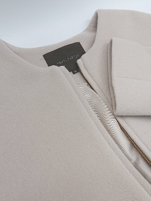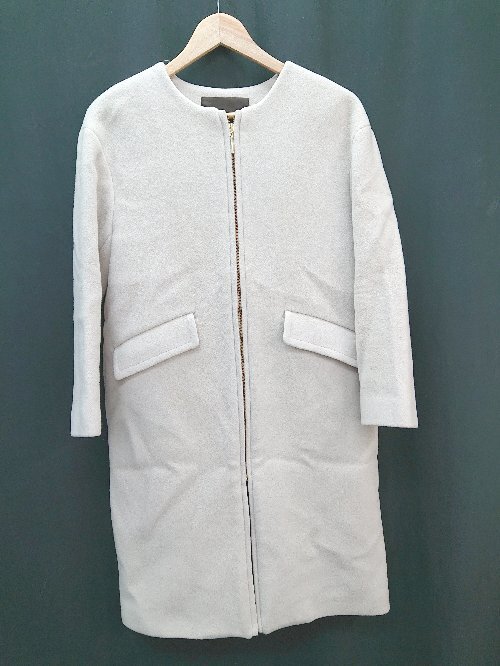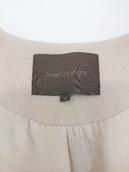 ◇ Jewel Changes ウール 大人女子 ジップアップ 長袖 ノーカラー コート サイズ36 ベージュ レディース P