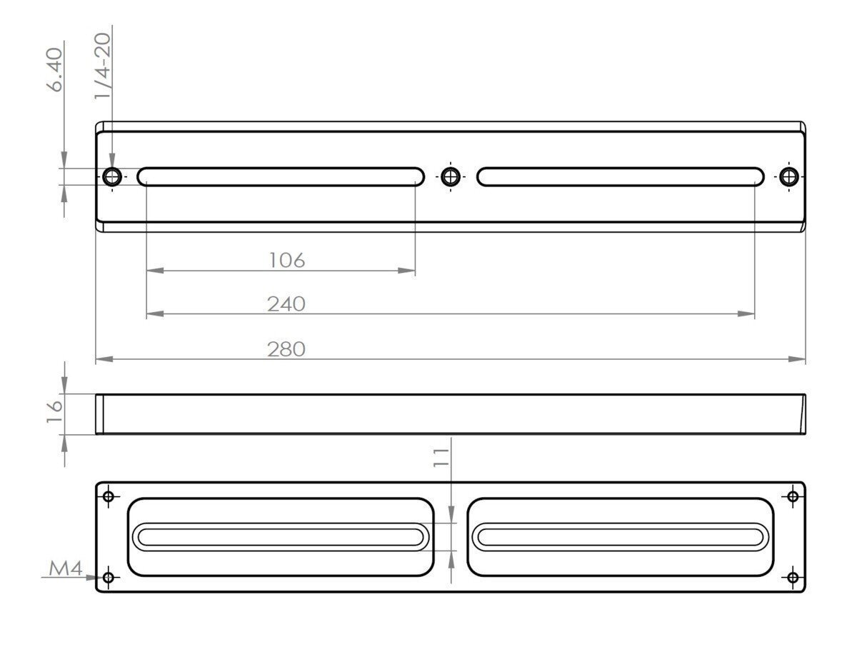 長穴の直径6.4mm設計でM6ネジ1/4カメラーネジともにご使用可能です。