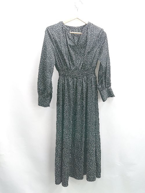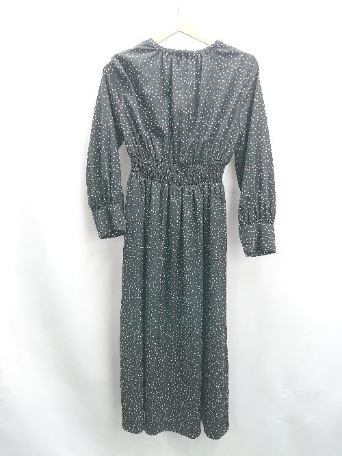 ◇ ⊂ NATURAL BEAUTY BASIC ドット柄 長袖 ロング ワンピース サイズM ブラック ホワイト レディース E