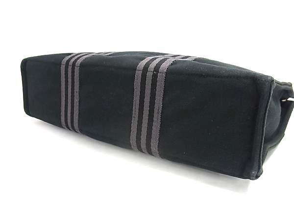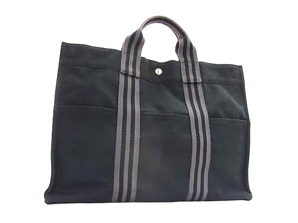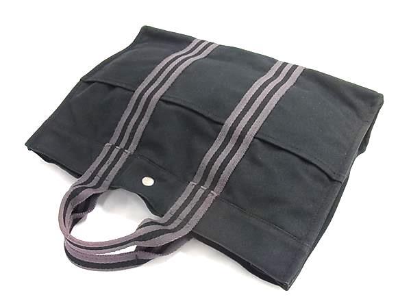 1円 HERMES エルメス フールトゥ キャンバス シルバー金具 ハンドバッグ トートバッグ レディース メンズ ブラック系×グレー系 FR7160