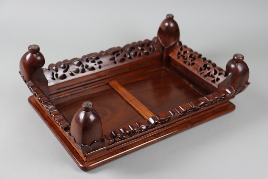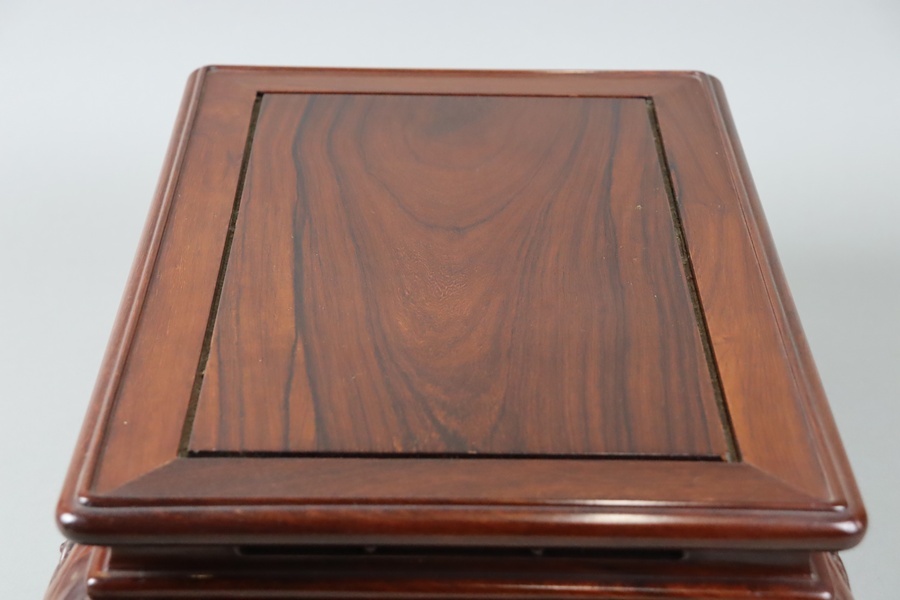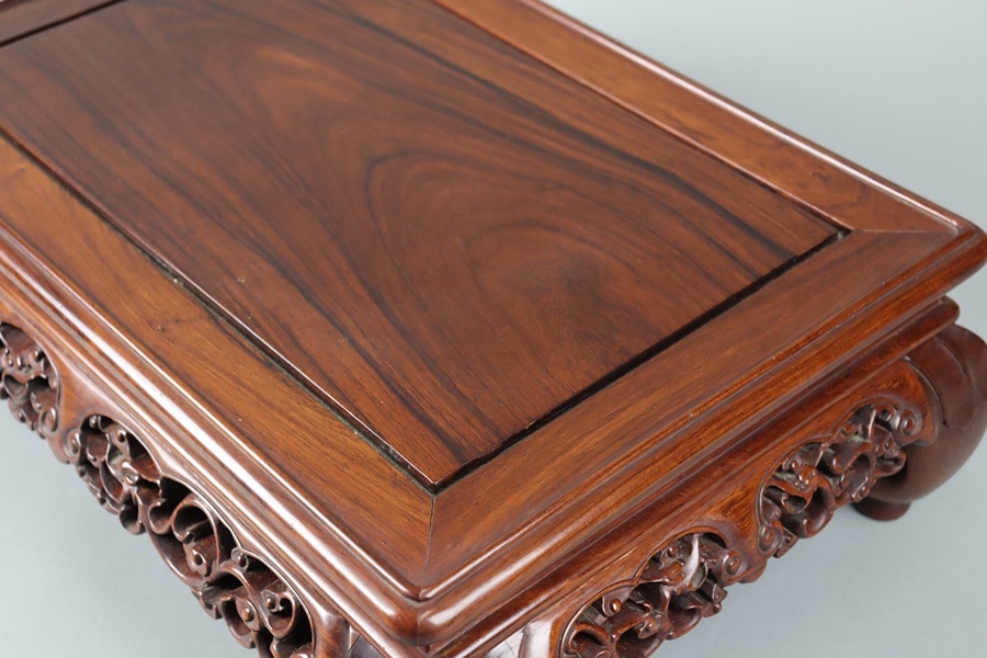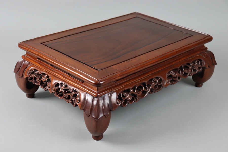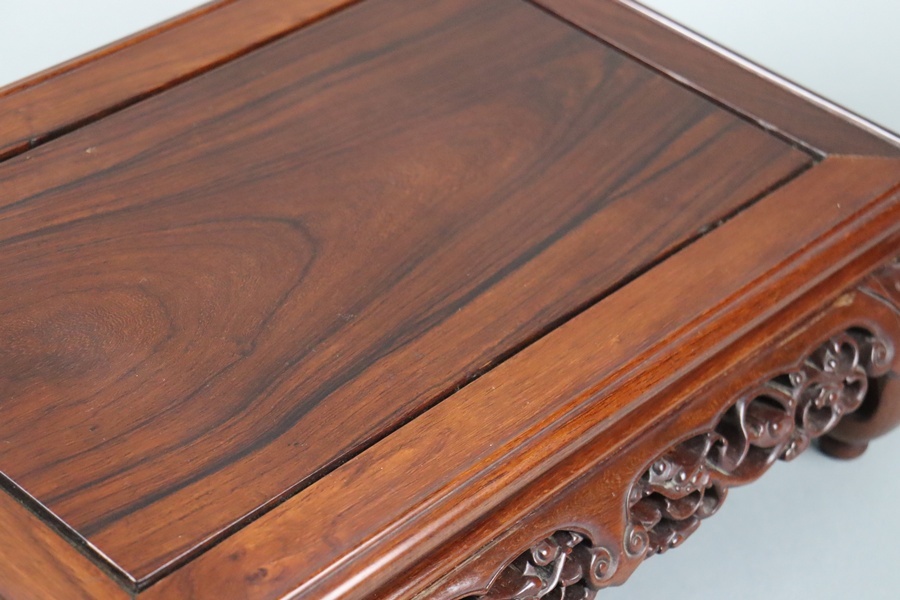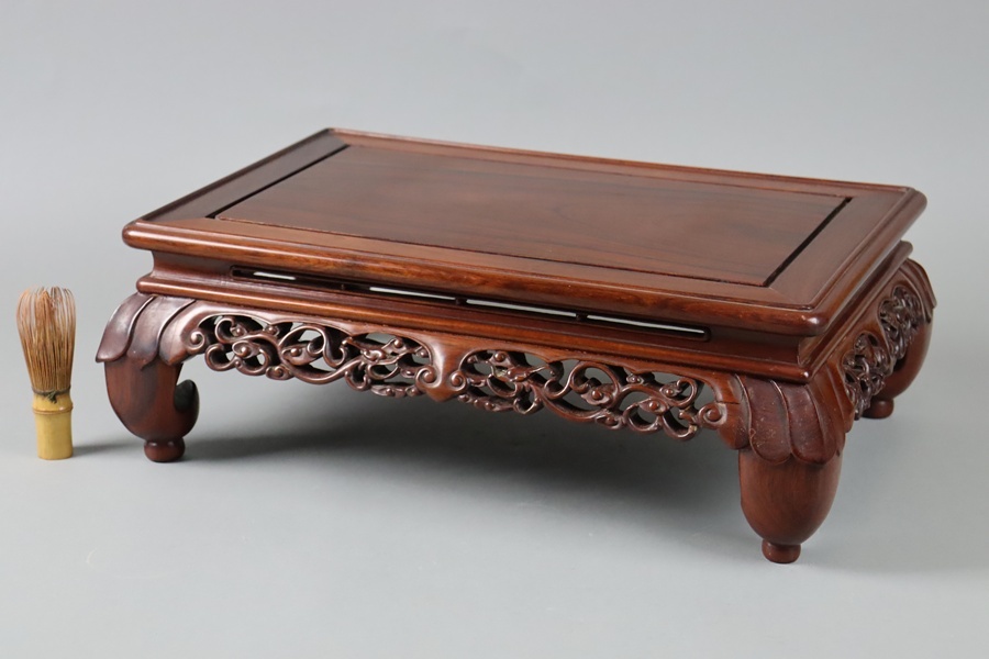 【中国古玩 唐木造 紫檀 霊芝透彫刻 花台 幅47,5cm】
