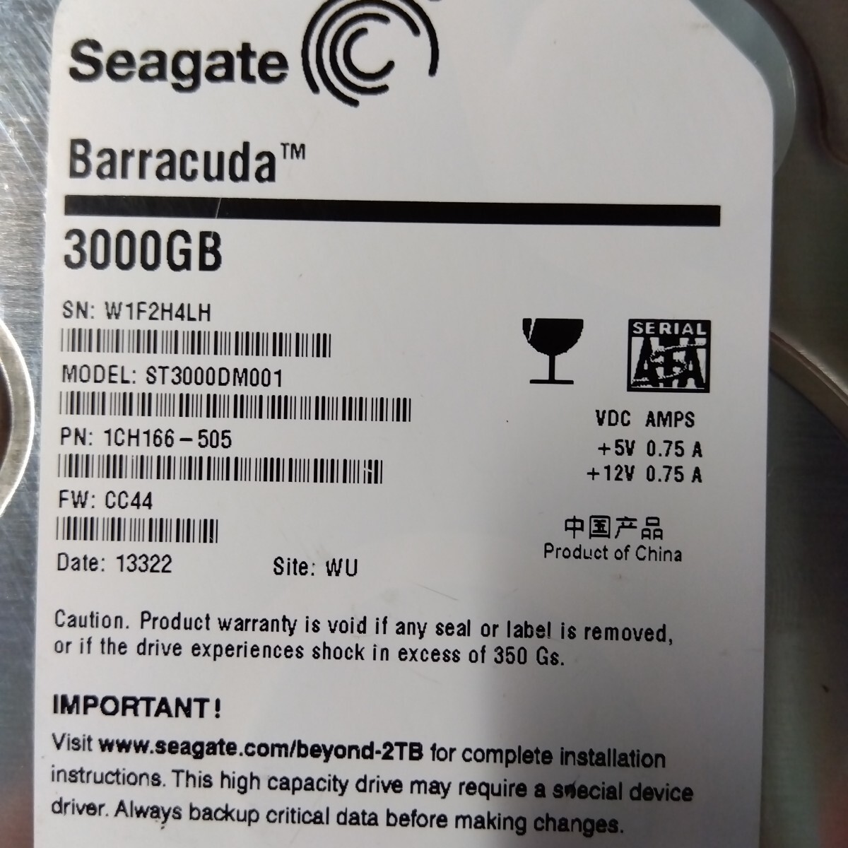 HDD 3TB 3.5インチハードディスク / Crystal DiskInfo 正常 / #316 / Seagate / ST3000DM001-1CH166