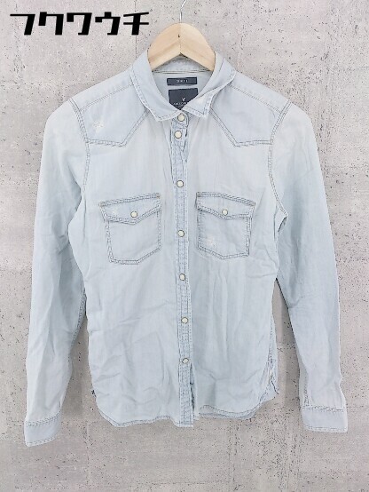 ◇ AMERICAN EAGLE OUTFITTERS ダメージ加工 長袖 デニム ウエスタン シャツ サイズXS インディゴ レディース