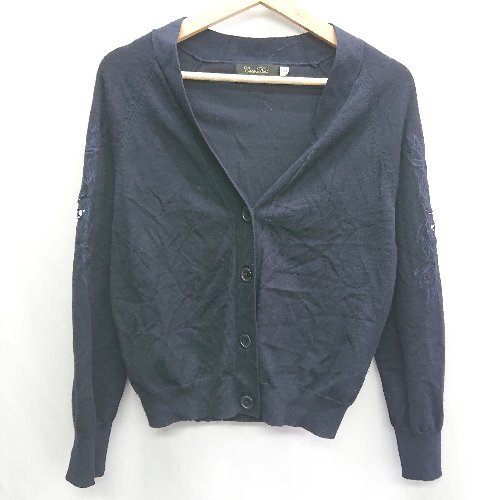 ◇ ⊇ COCODEAL 袖花刺? 長袖 ニットカーディガン サイズ2 ネイビー レディース E
