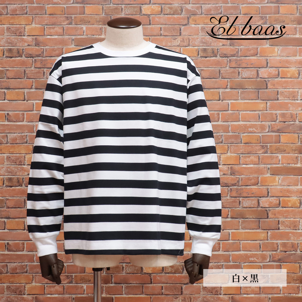 1円/Et baas/Lサイズ/長袖Tシャツ 日本製 綿100% ボーダー カットソー エバース 新品/白×黒/kf394/